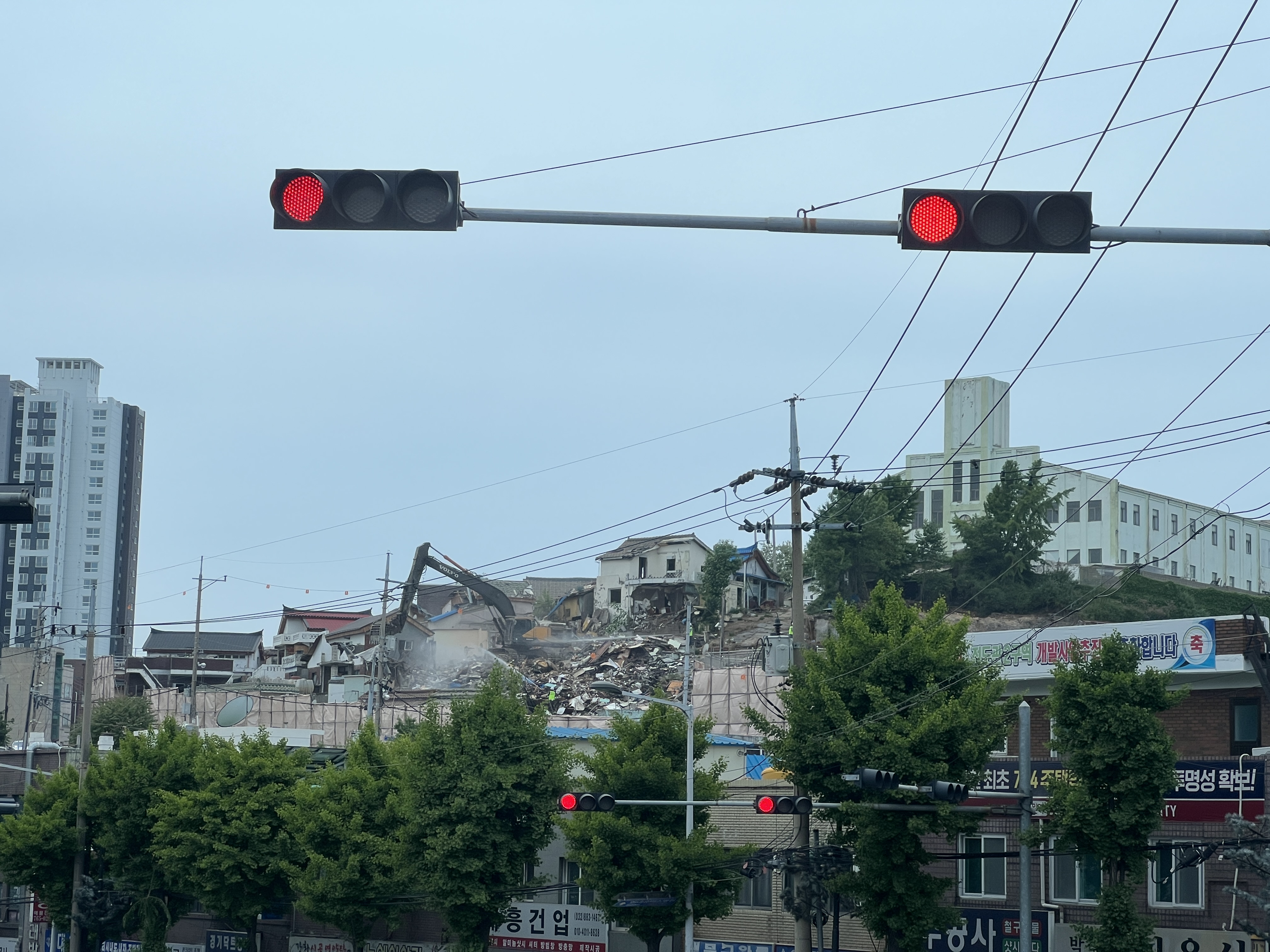 창영동 인천세무서앞에서 바라보니 철거중인 좌측의 전도관구역재개발지구와 대비되서