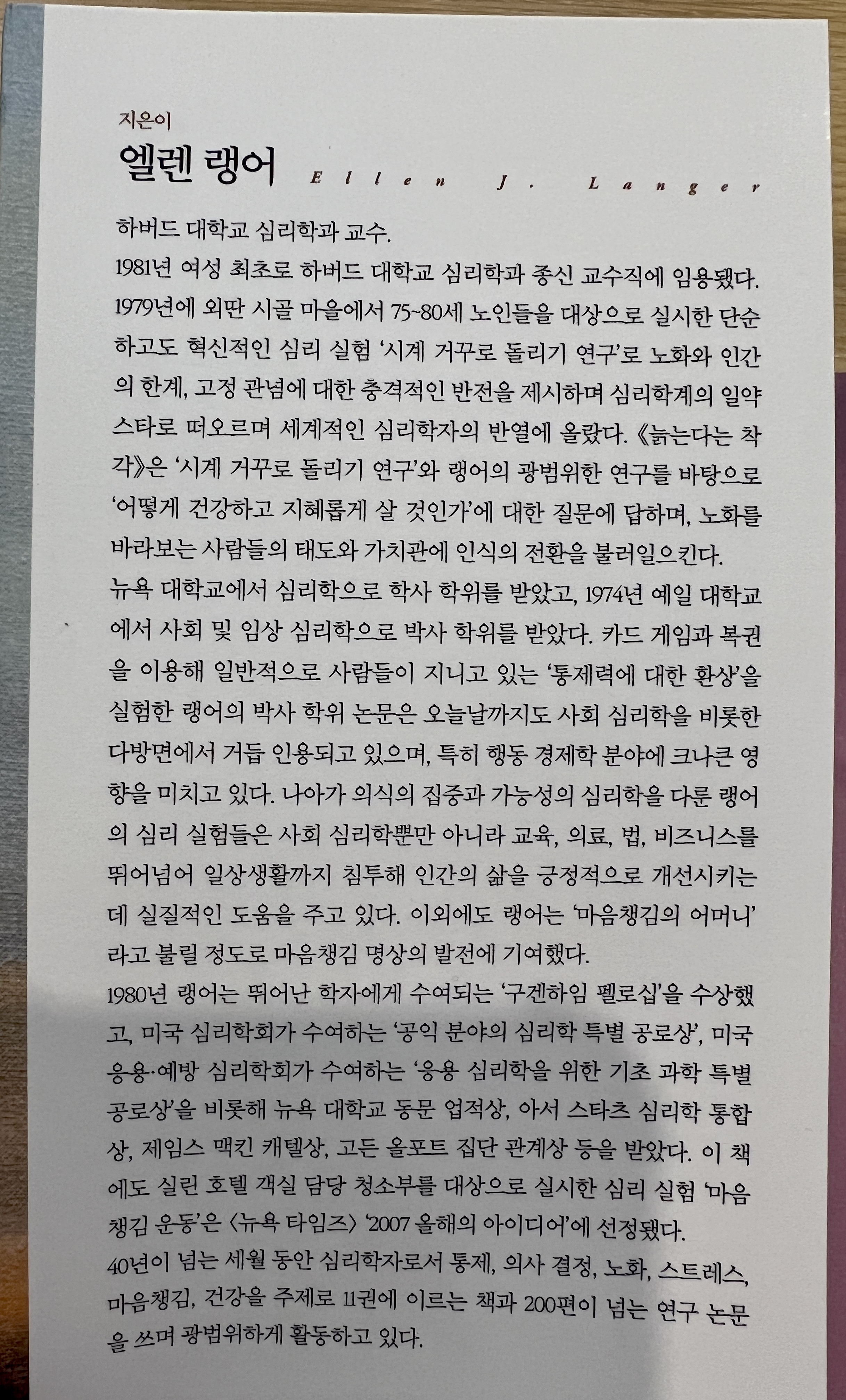 하버드 심리학 거장이 전하는 건강하고 지혜롭게 사는 법 이라는 부제목에 끌려 구매하게 되었습니다.