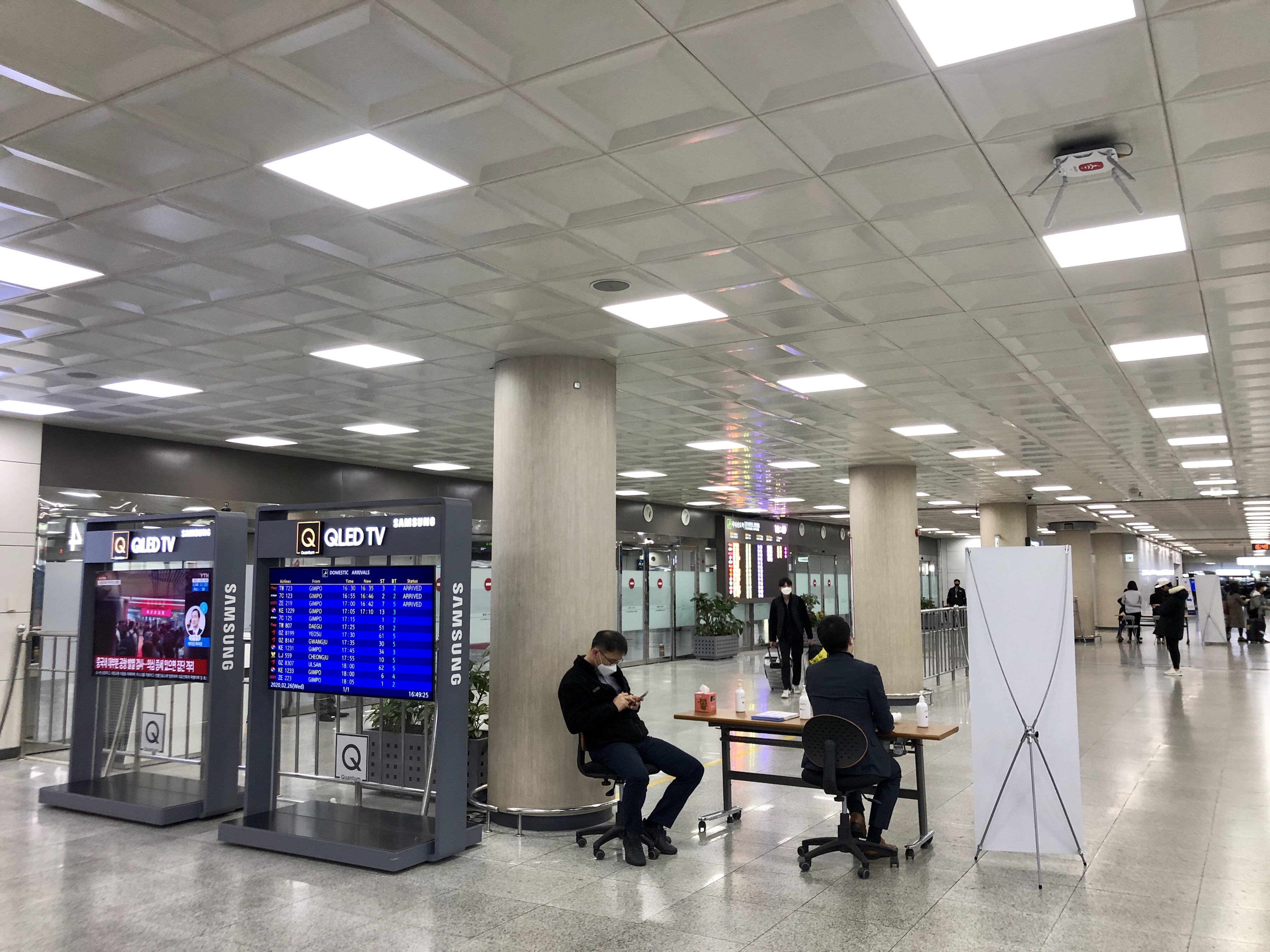 공항 입국장에서는 국내선 도착 승객들 대상으로도 열감지카메라를 켜고 한명씩 확인하고 있었다.