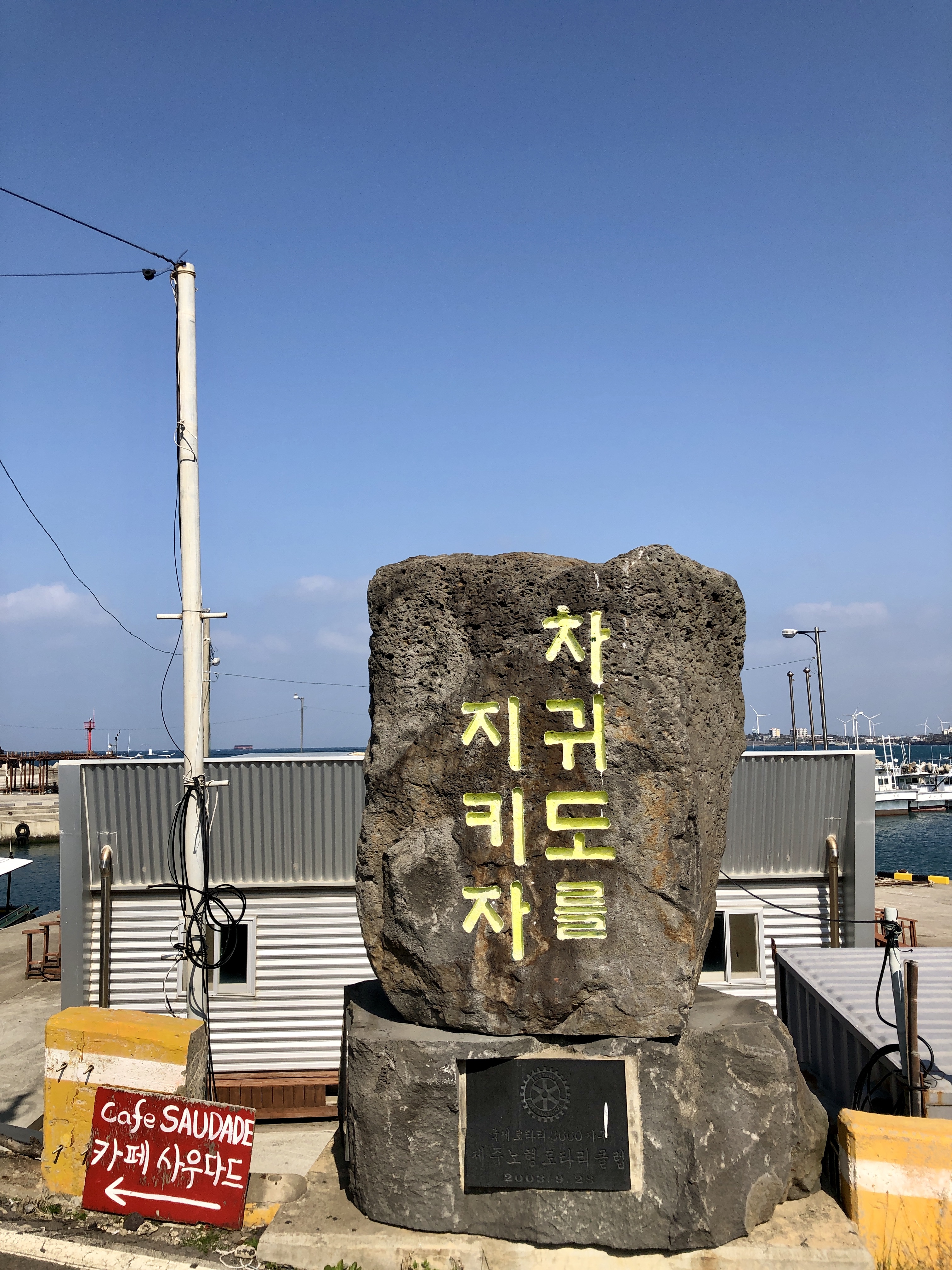 포구 입구에 서있는 인상깊은 돌판 메세지!