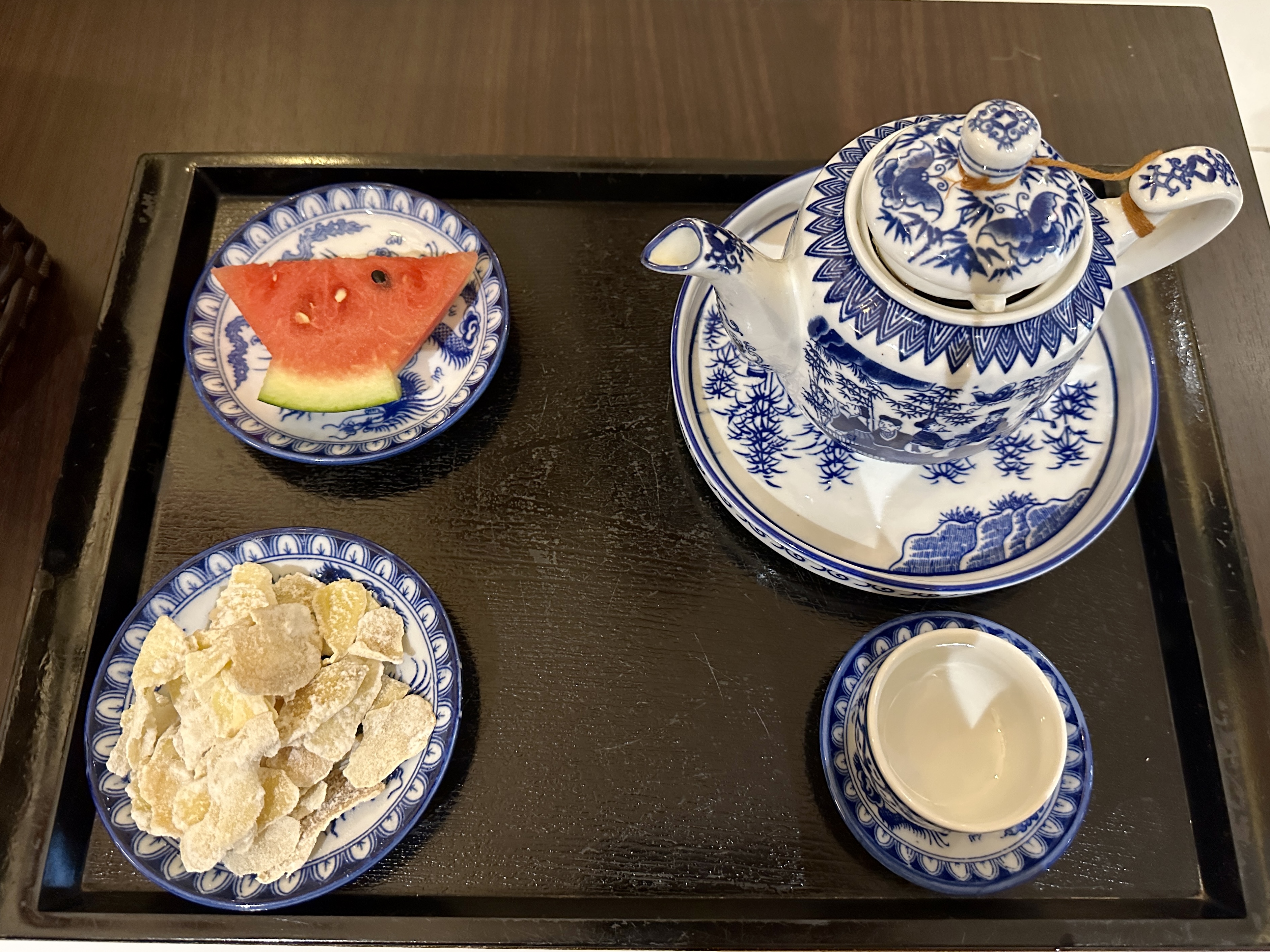 투란스파 마사지가 끝나면 1층의 한 공간으로 안내되어 과일과 차 그리고 간단한 스낵을 줍니다.