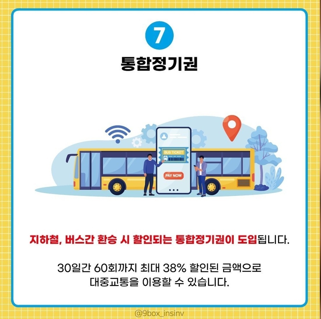 이 통합정기권은 30일간 60회까지 최대 38% 할인된 금액으로 대중교통을 이용할 수 있다고 합니다.