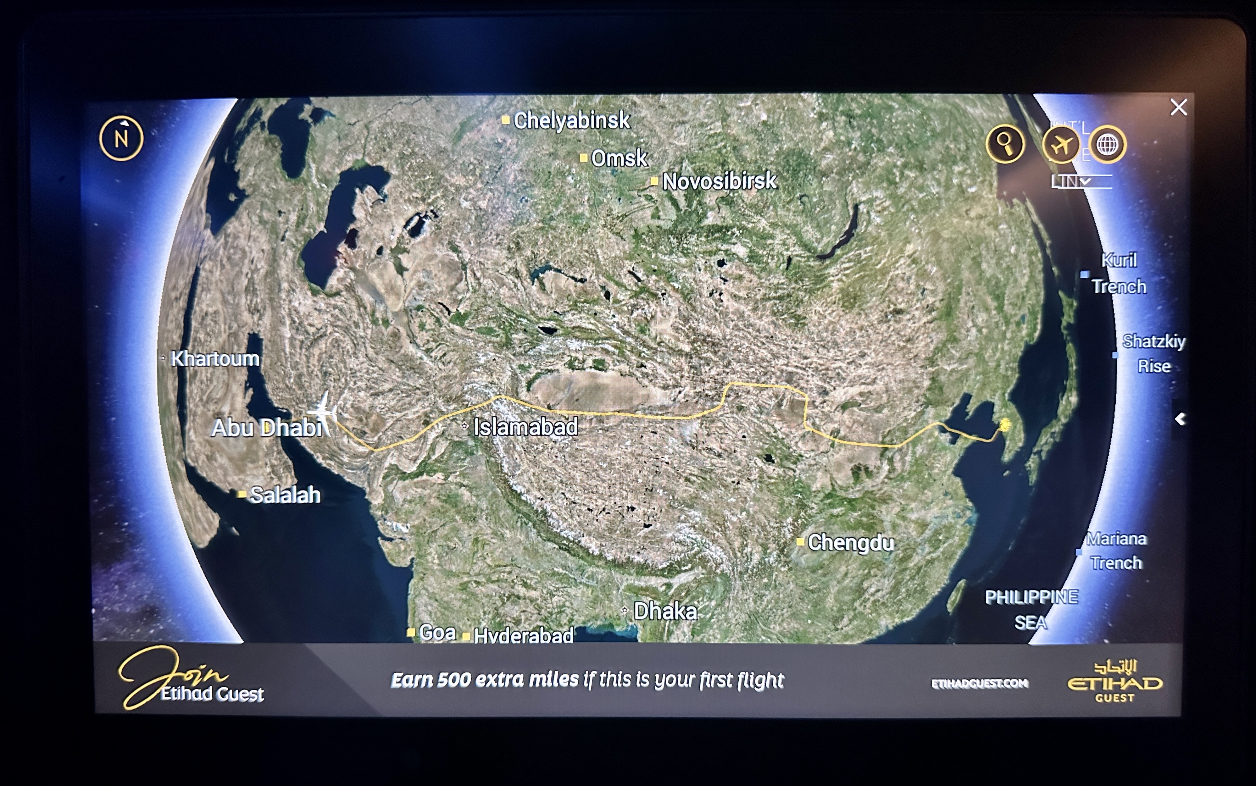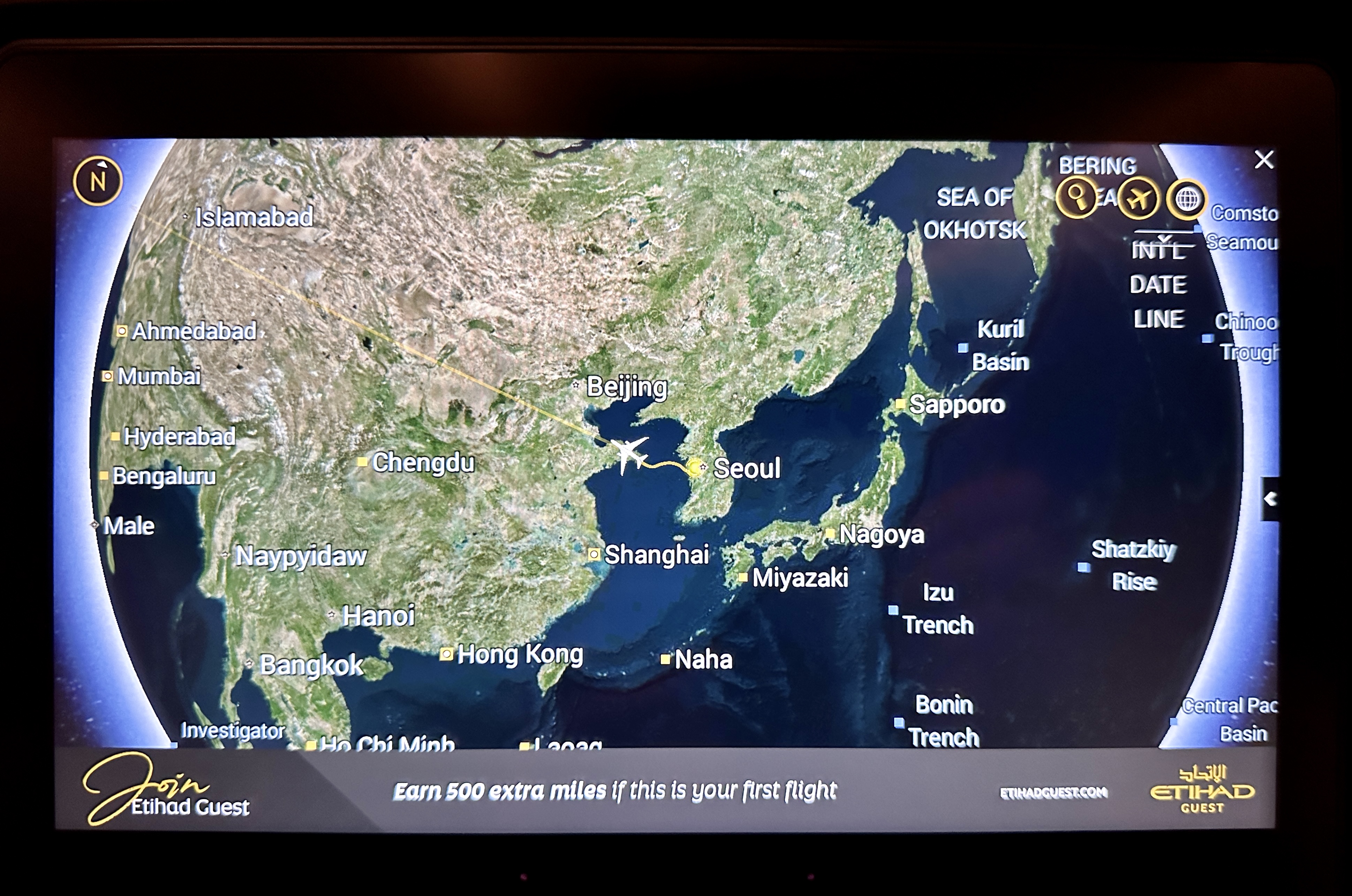 에티하드항공 인천-아부다비 구간의 EY857은 보잉 B787 드림라이너로 운항되며,