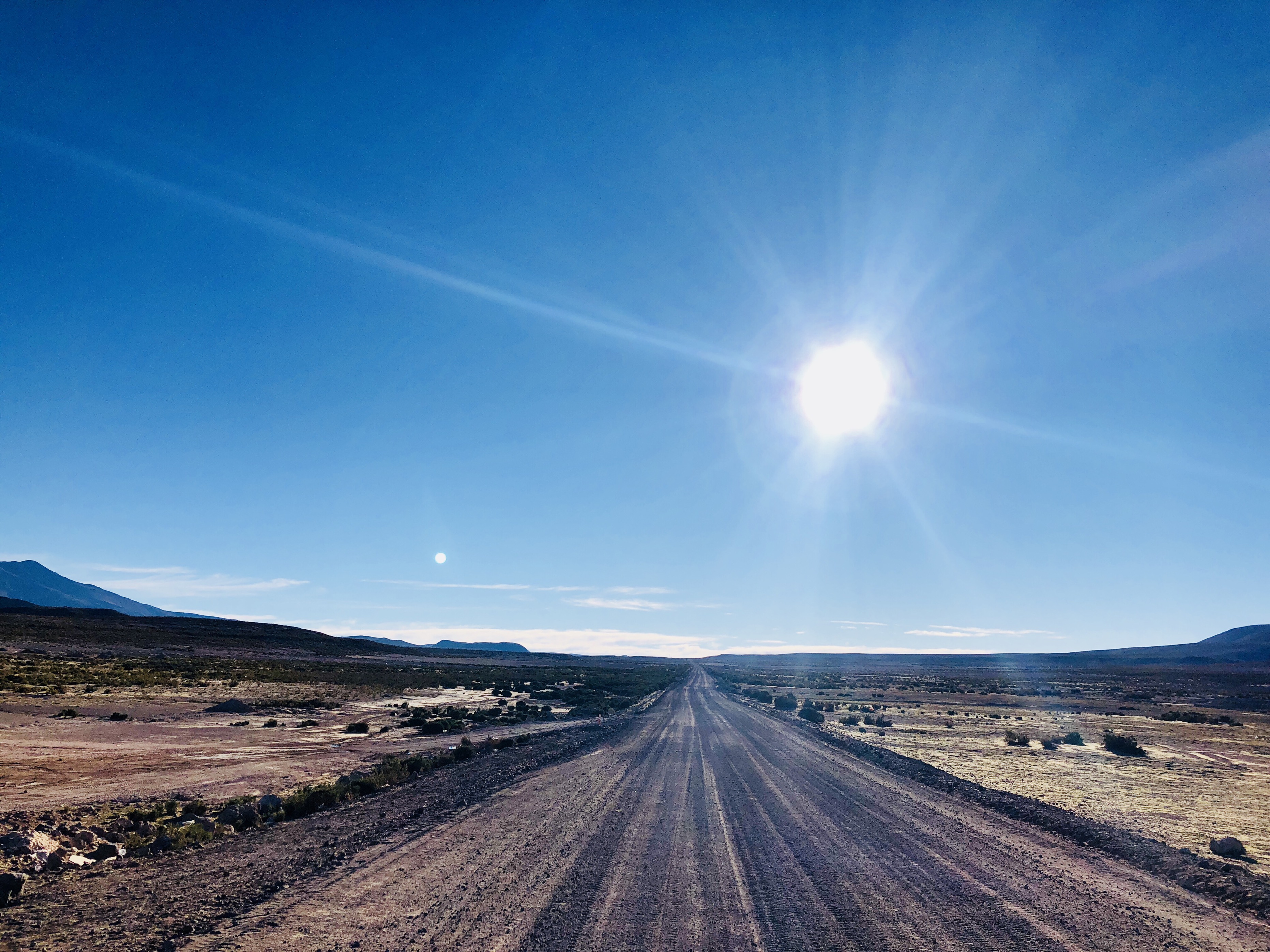 첫 번째 목적지를 향해 가다가, 드넓은 사막 한가운데에 있는 기찻길에서 잠시 멈추었다.