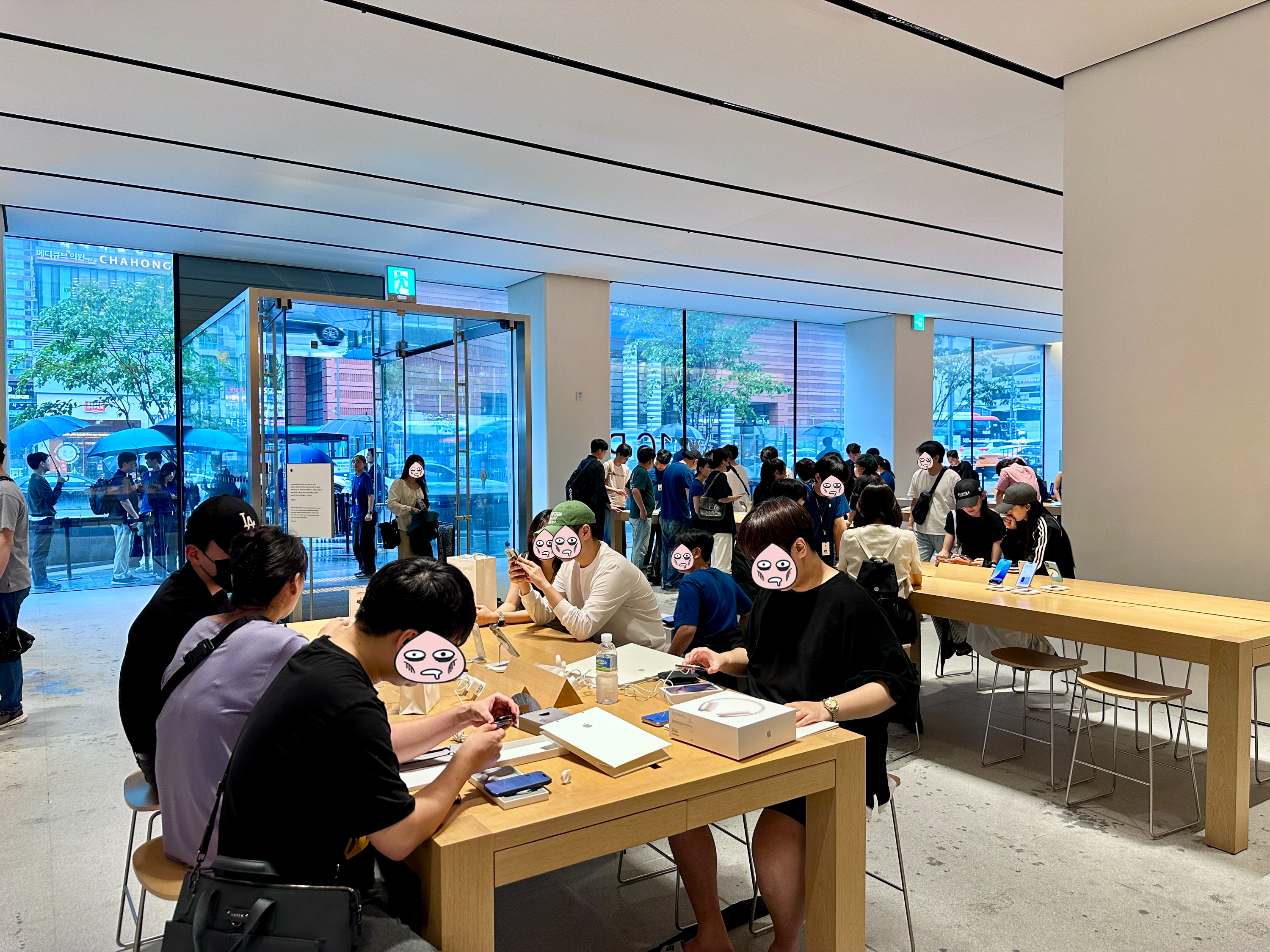 애플의 아이폰 1차 출시국인 첫날 미리 사전예약해 둔 아이폰 16 프로맥스를 픽업하러 정해진 시간에 강남 애플스토어로 향했습니다. 비도오고 아이폰 16에 대한 실망 기사가 많았는데도 역시나 애플과 아이폰 걱정은 하는게 아니라는걸 입구의 대기중인 인파를 보며 또 한번 실감 할 수 있었습니다.