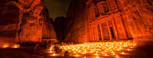 1,800개의 촛불이 밝히는 빛 속에서 밤의 페트라를 바라보면 마치 이 세상이 아닌 듯한 경험을 하게 됩니다.