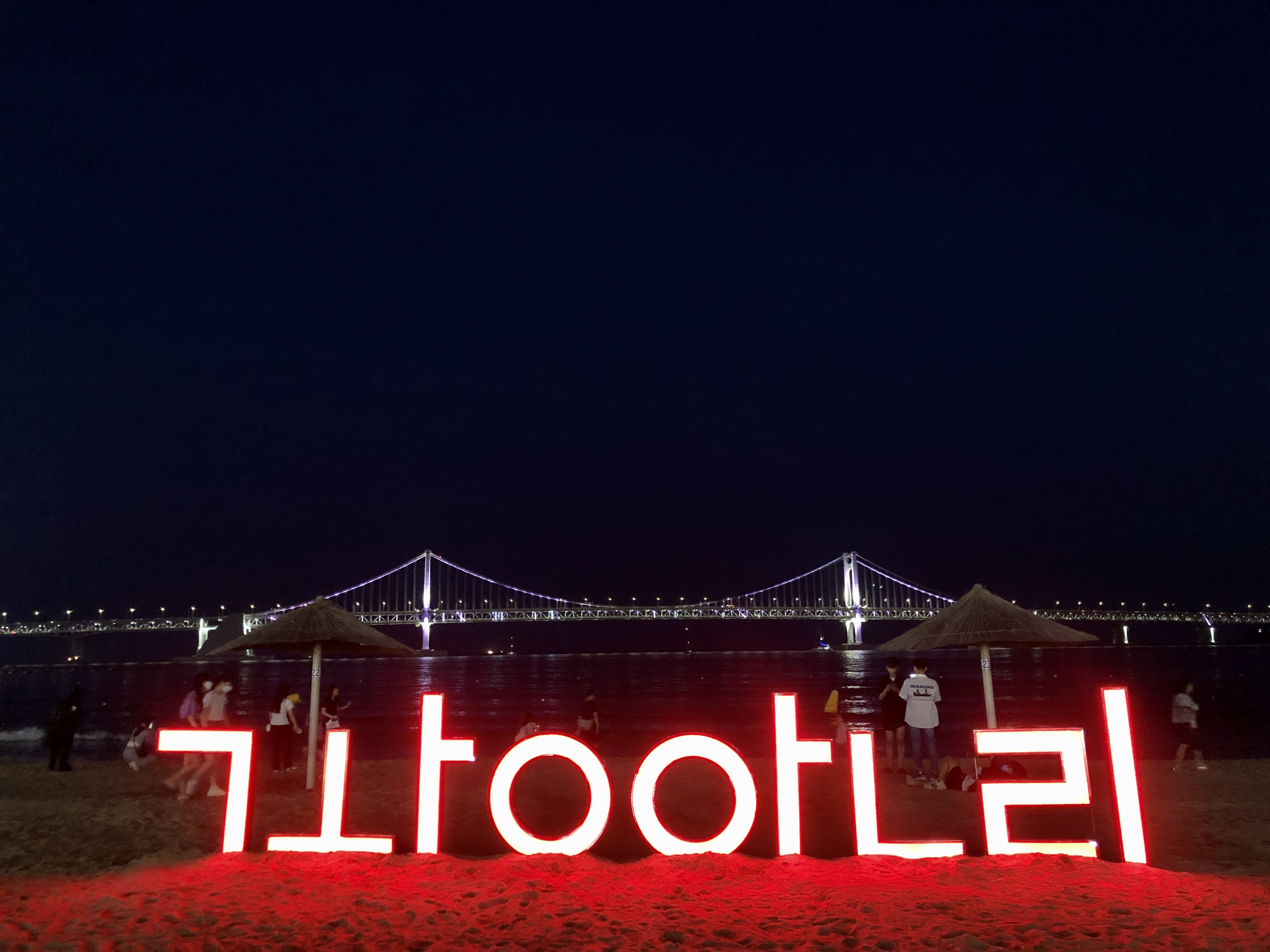 광안리 시그니처 글자도 밤이 되니 불빛이 들어왔다.