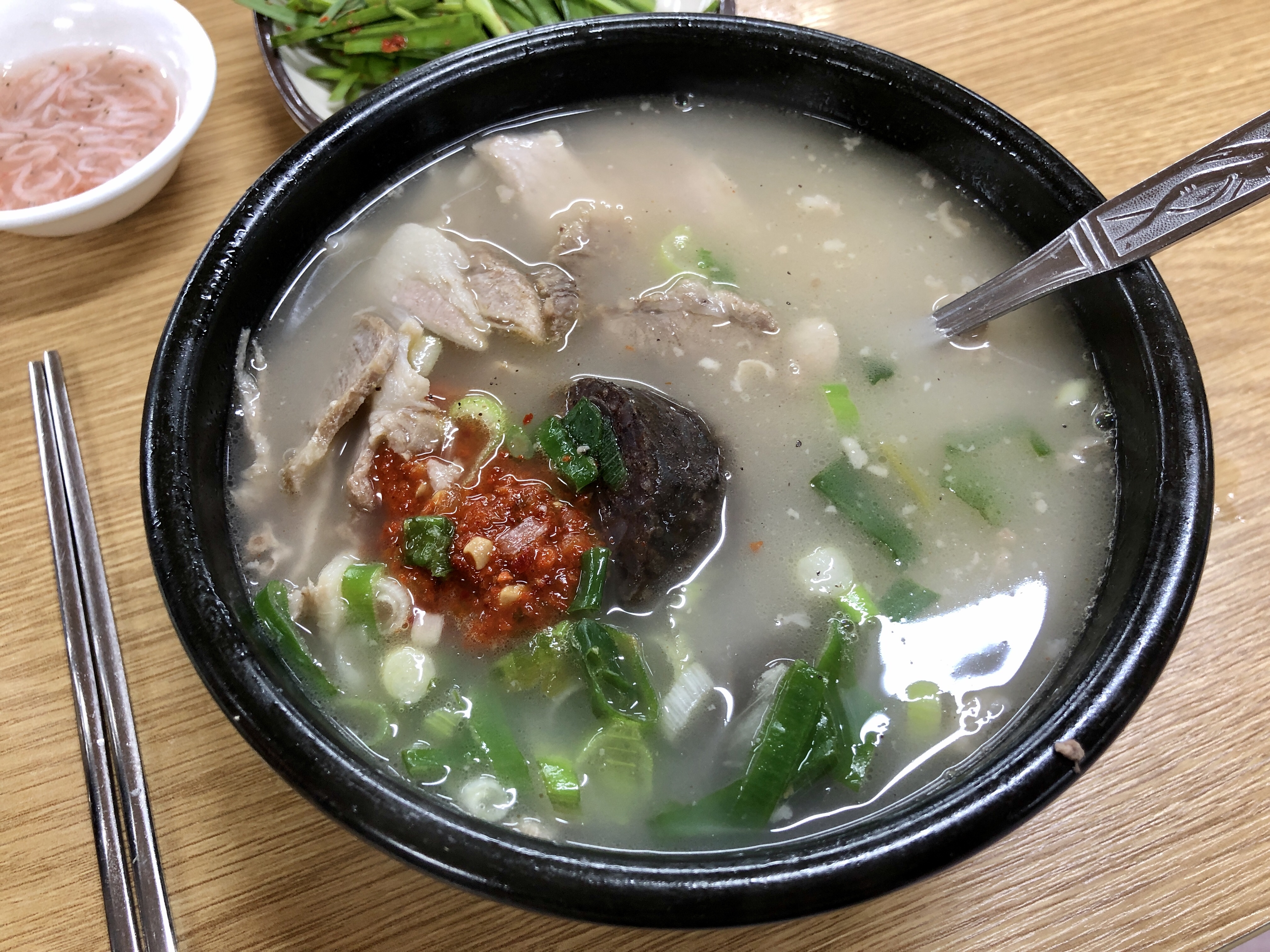 꽤 늦은 시간임에도 손님들이 어느정도 있었다. 나는 따로 순대국밥을 주문해서 먹었다.