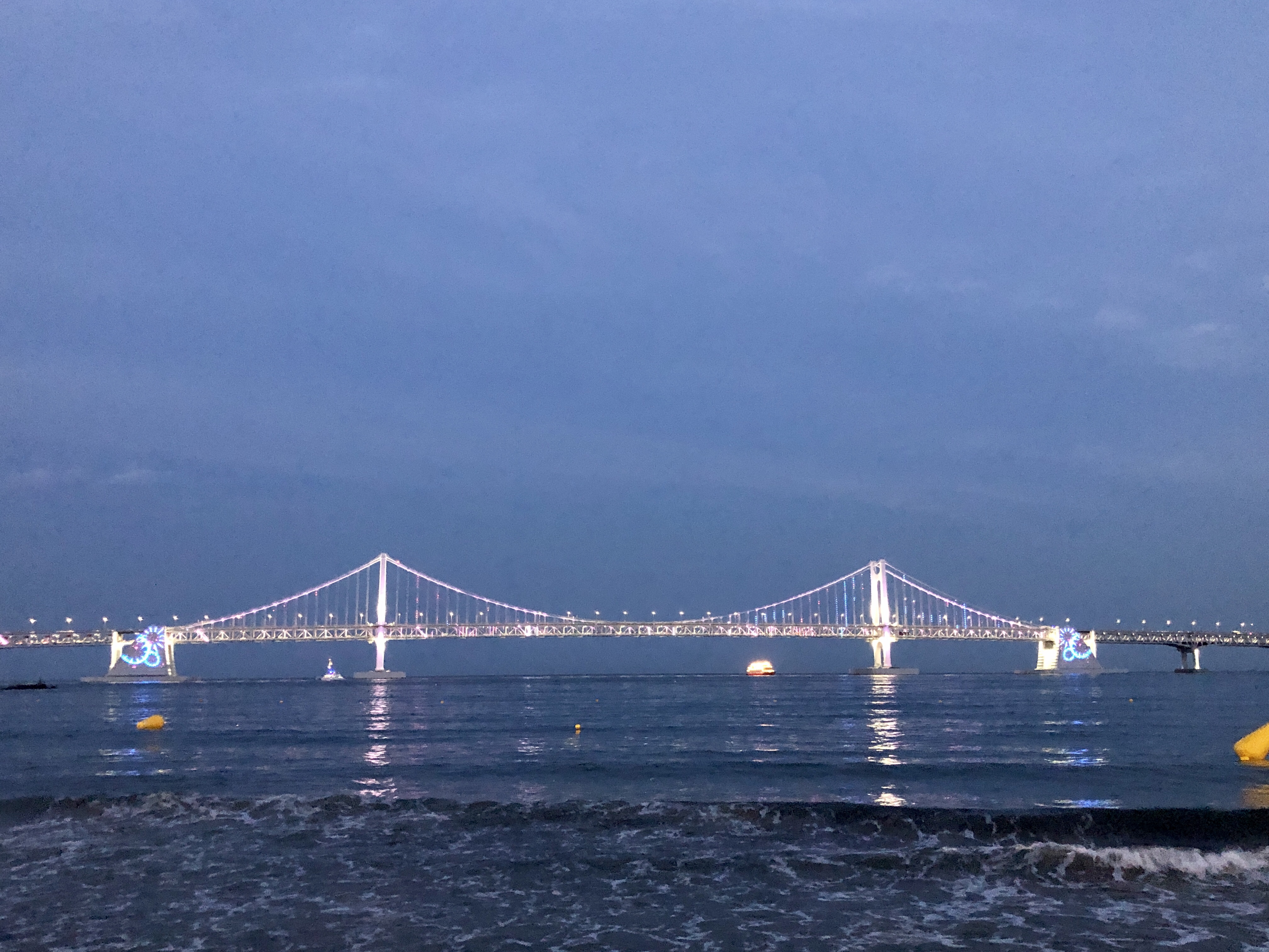 7시 30분쯤 일몰시간이 되고 조금씩 어두워지기 시작하자, 광안대교에 불빛이 들어오며