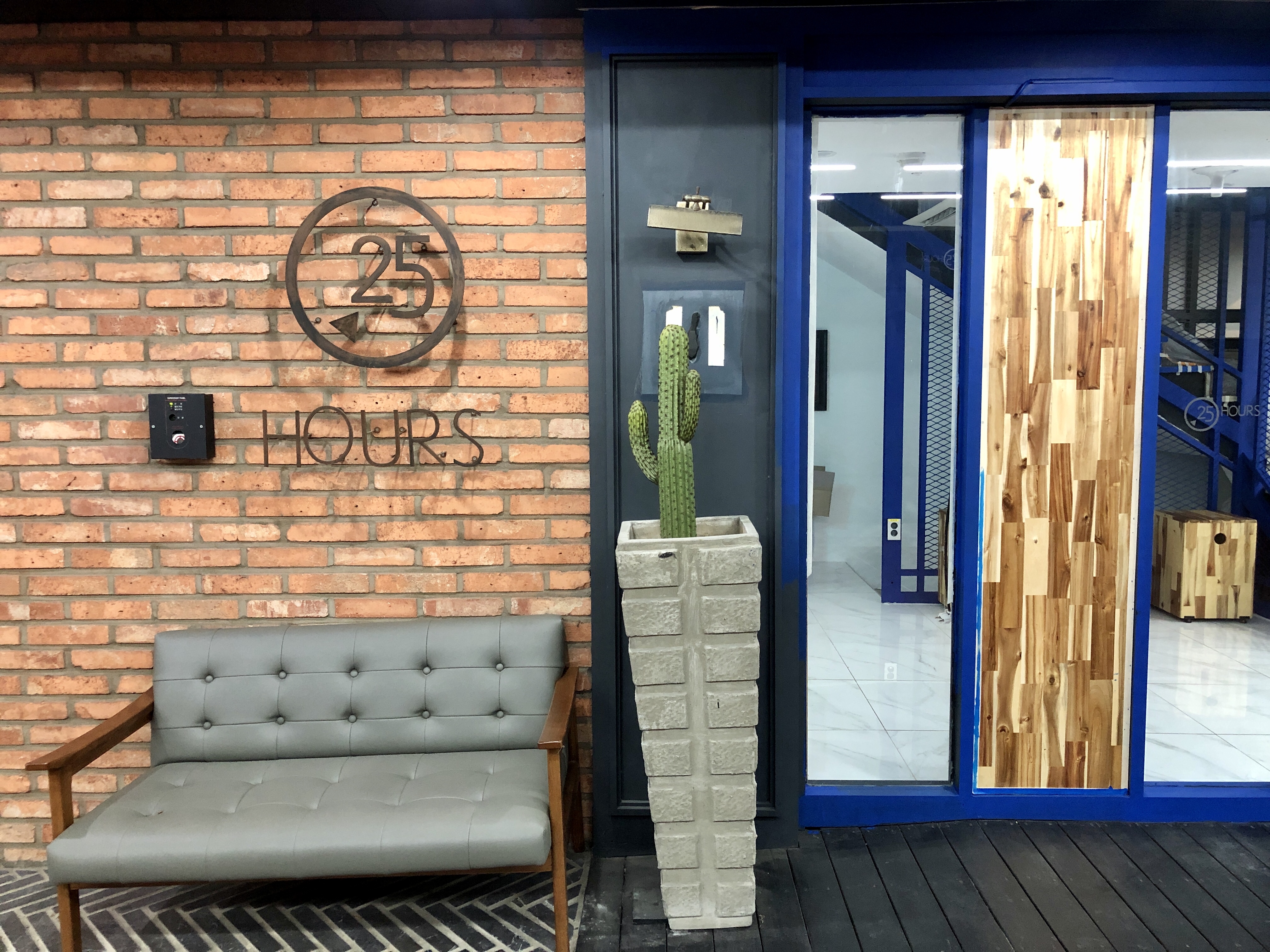 입구의 선인장과 쇼파가 인상적이었으며, 복도도 벽을 유리창으로 붙임처리 해놔서