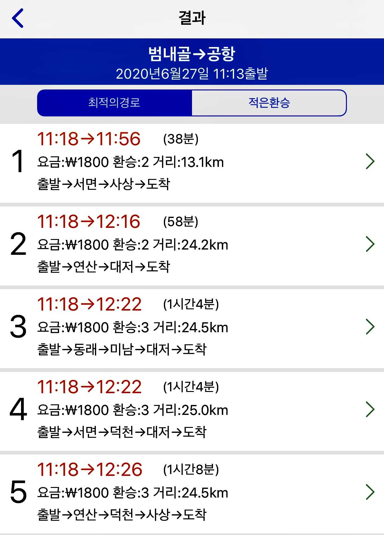 부산 지하철 어플로 찍어보니 38분 소요되는 것으로 나온다.