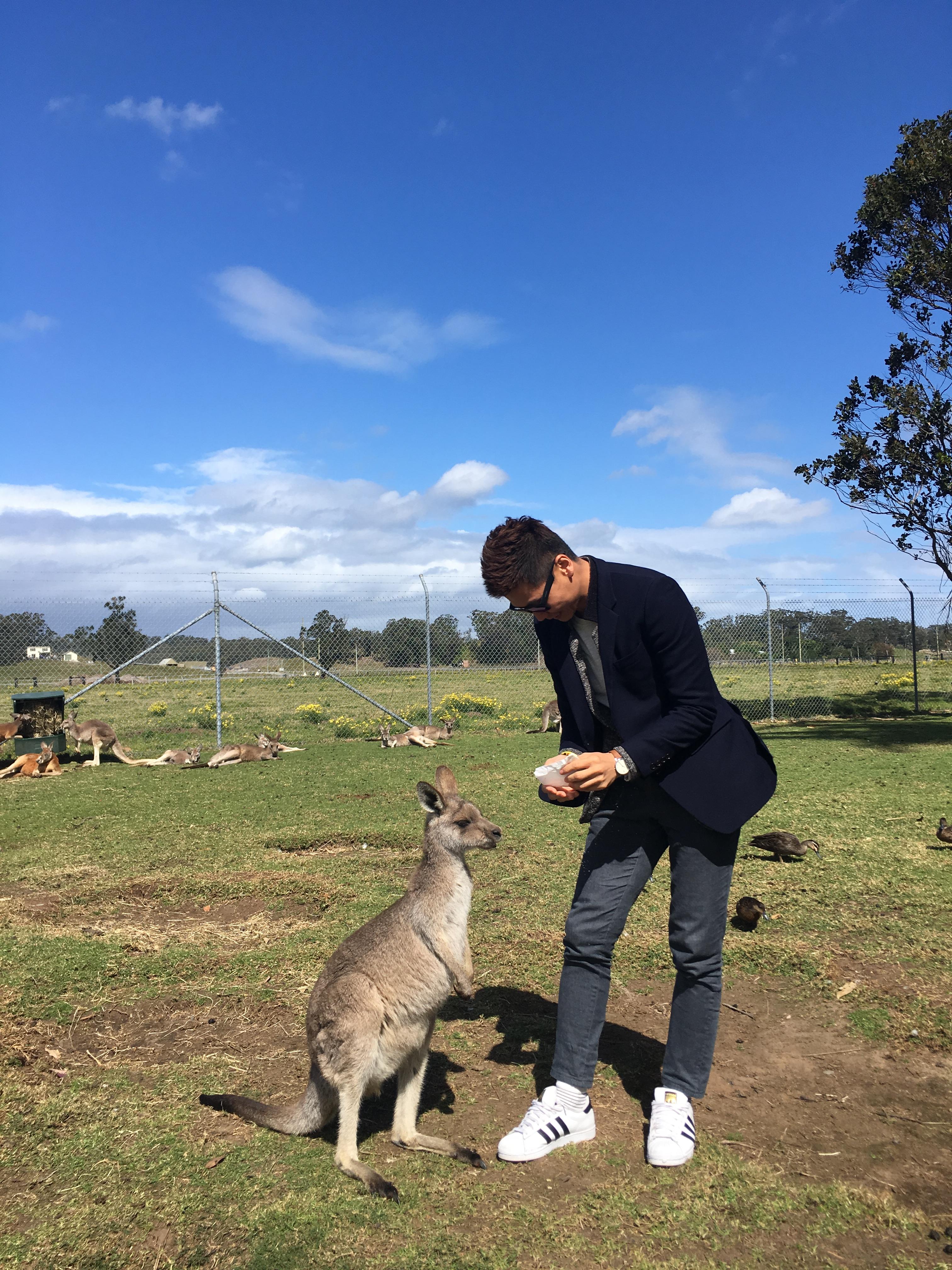 생각보다 캥거루 발톱이 너무 날카로워 다리가 아팠다. 그래서 앉아서 주니 스스로 두발로 서서