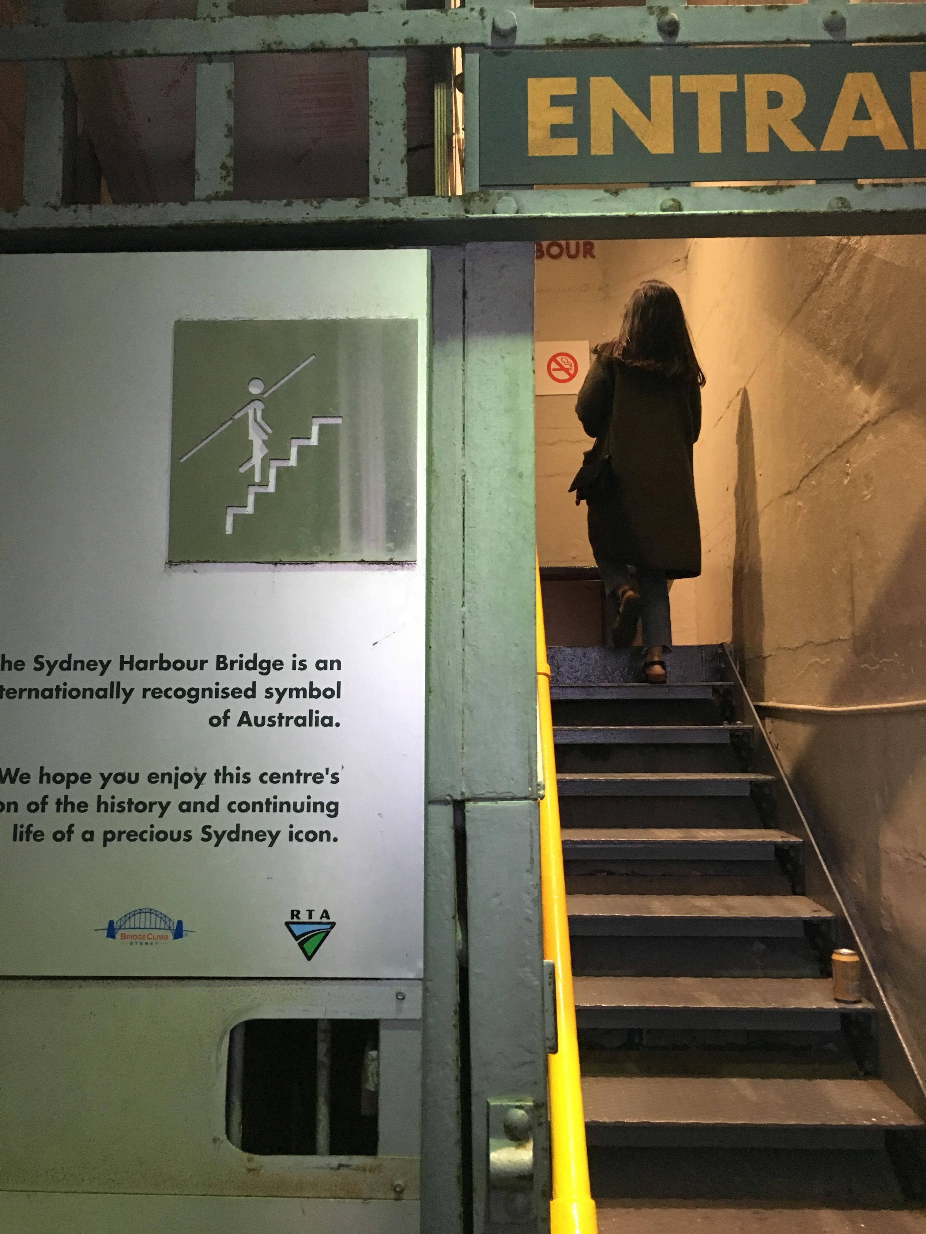 우선 하버브릿지 방향으로 계단을 걸어 올라가면 다리를 걸어서 건너는 길이 있다.