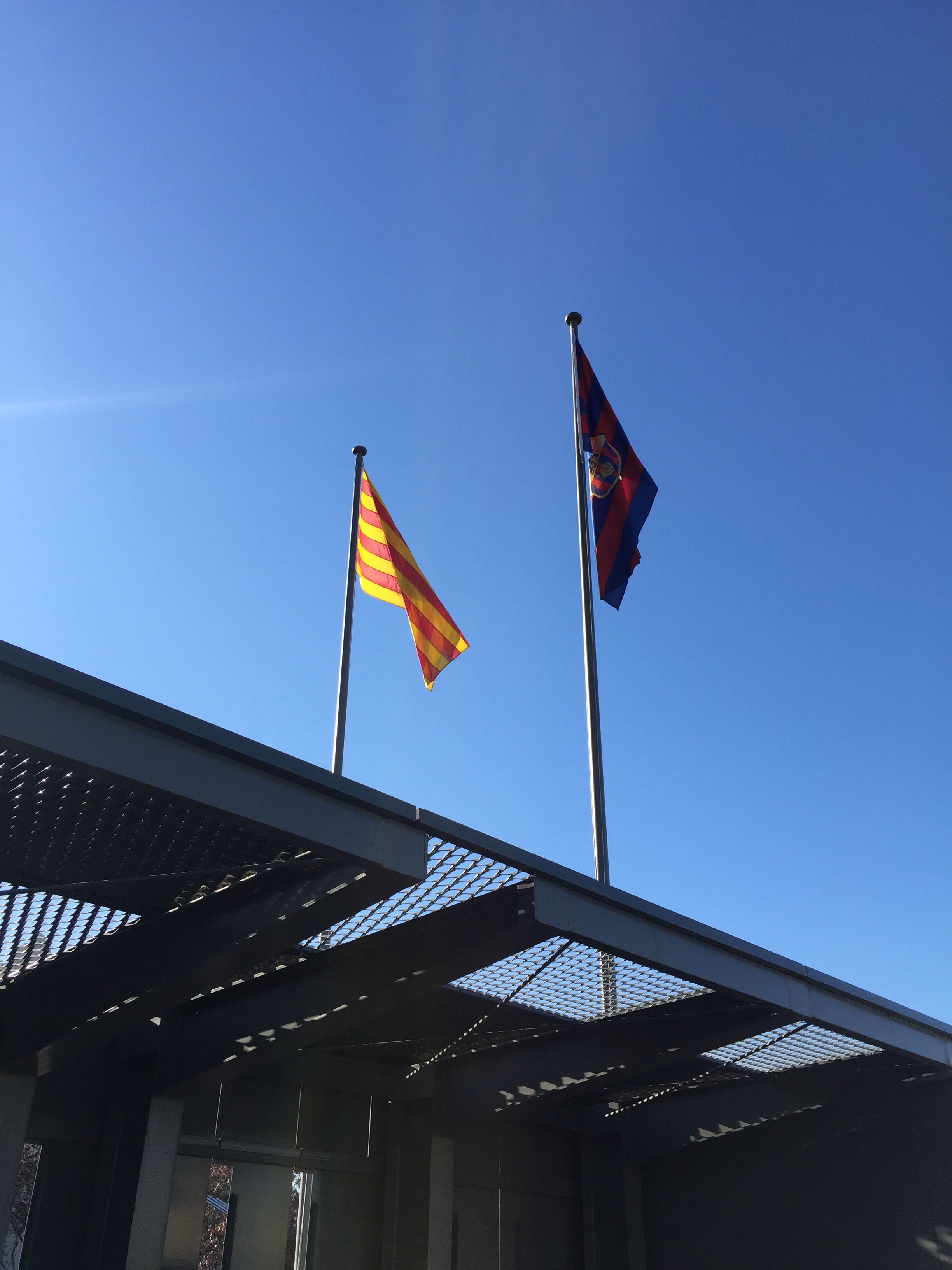 경기장을 나서는데 FC 바르셀로나의 깃발과 함께 카탈루냐 깃발이 같이 걸려있었다.