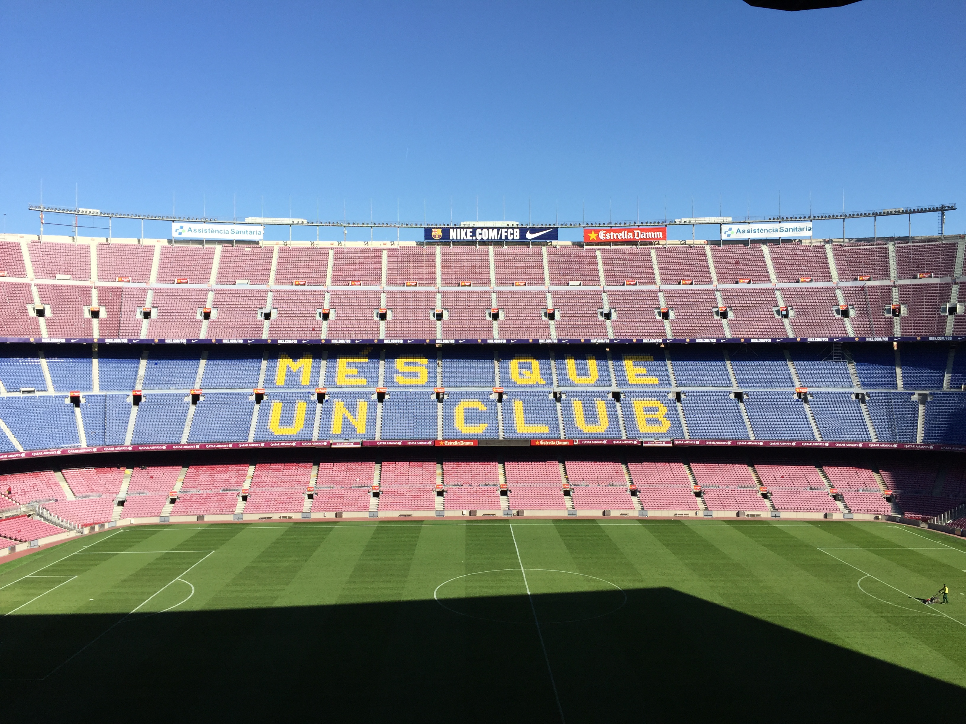 캄프누는 약 10만명을 수용할 수 있는 거대한 경기장으로 잔디를 밟으며 올려다본 경기장은