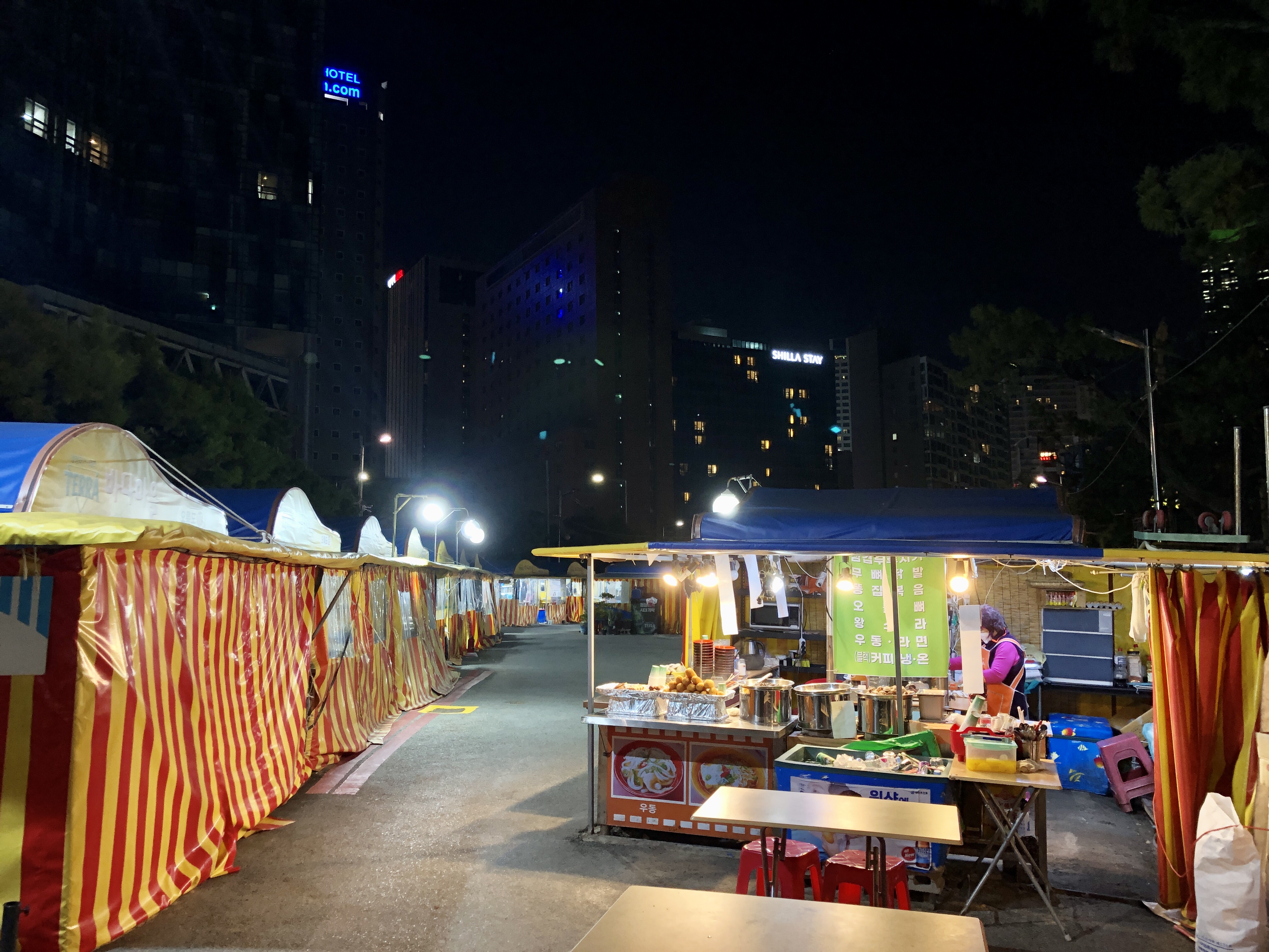그리고 공원 한 쪽에는 포장마차 거리가 형성되어 있었습니다.