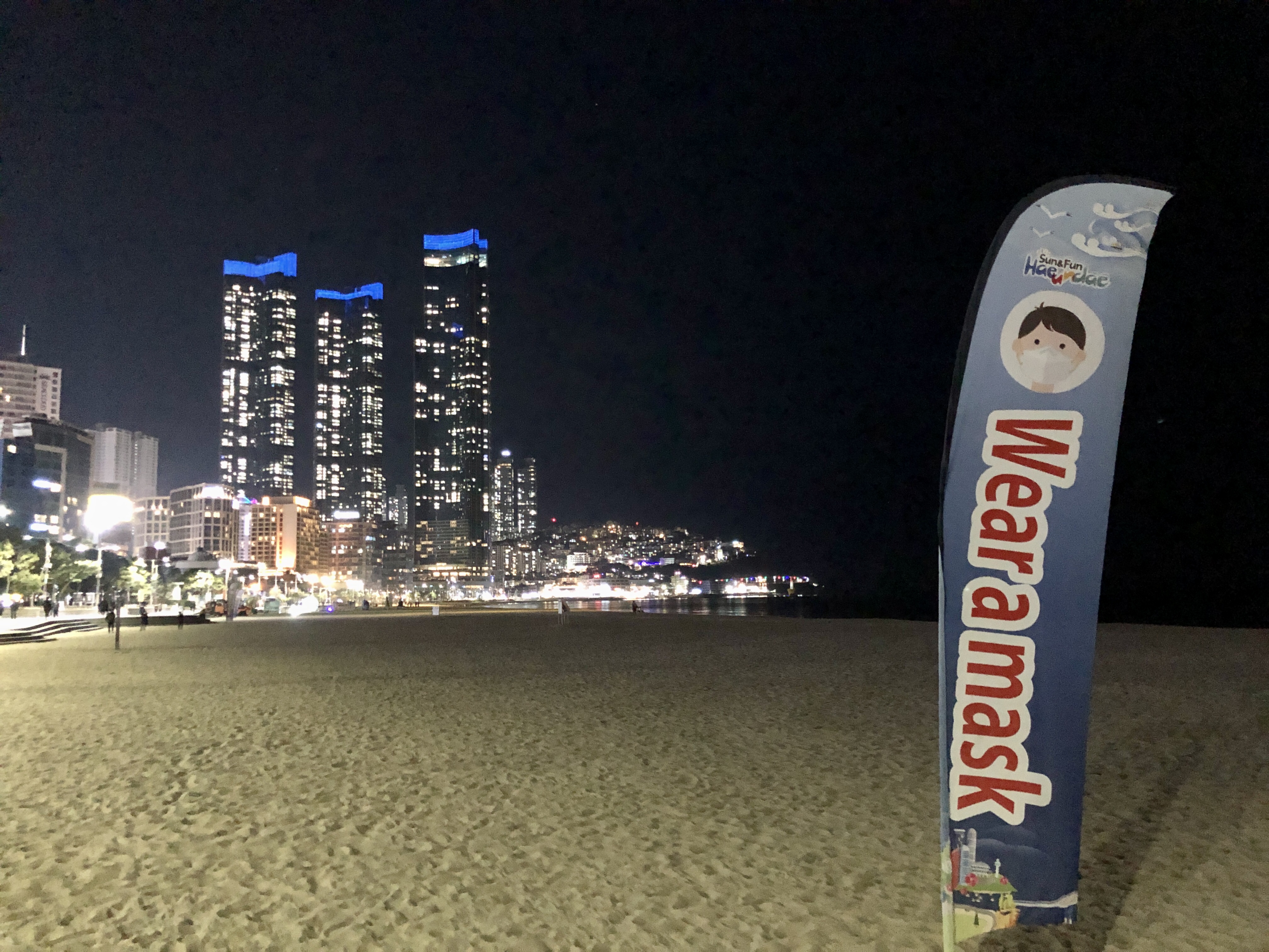 모래사장과 산책로에는 마스크착용 간판과 단속 직원분들이 근무하고 있었습니다.