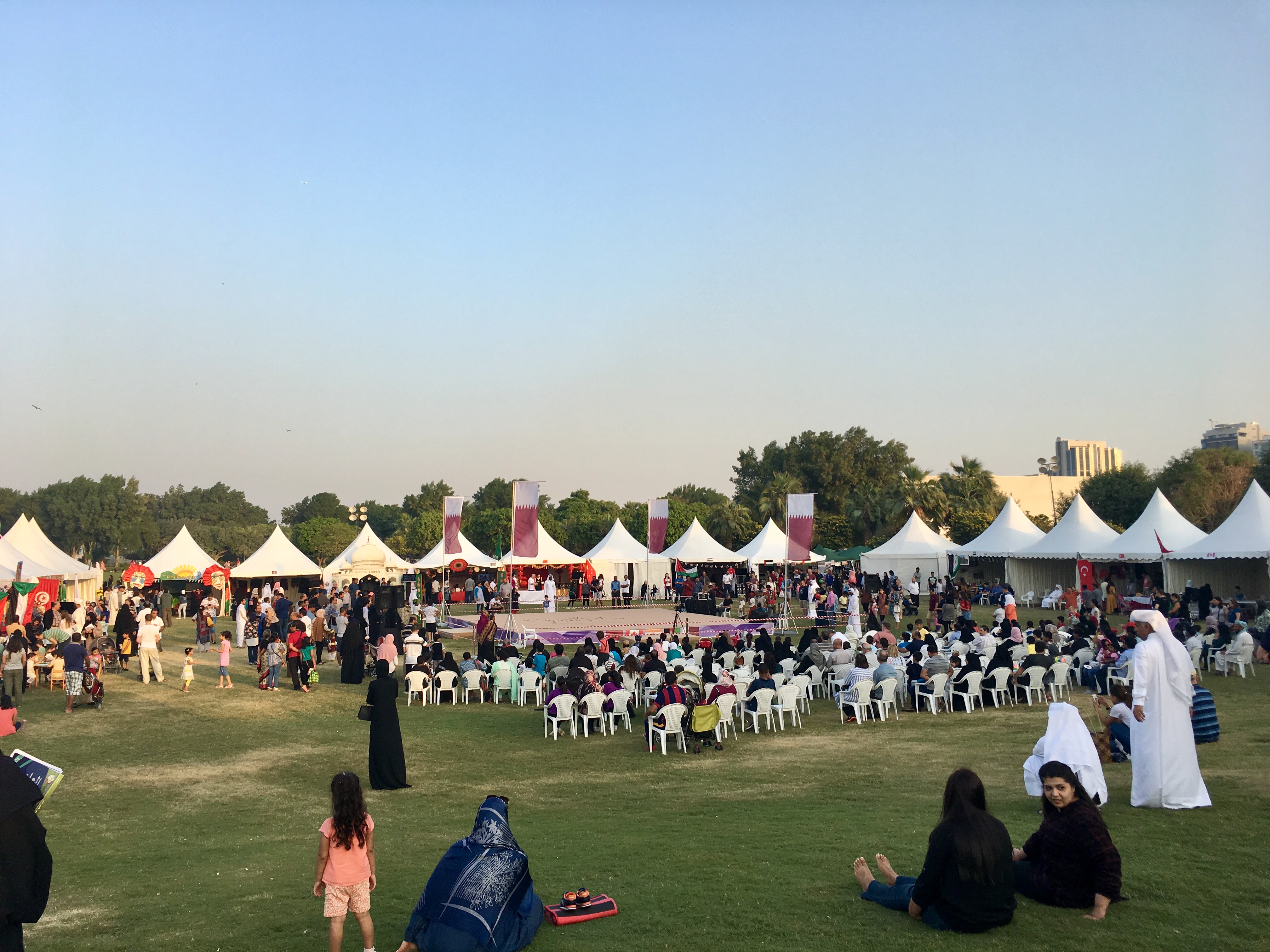 각국 국기가 걸려있고, 우리나라 전국 노래자랑처럼 중앙에 무대가 있고 사람들이 주변에 많이 모여있었다.