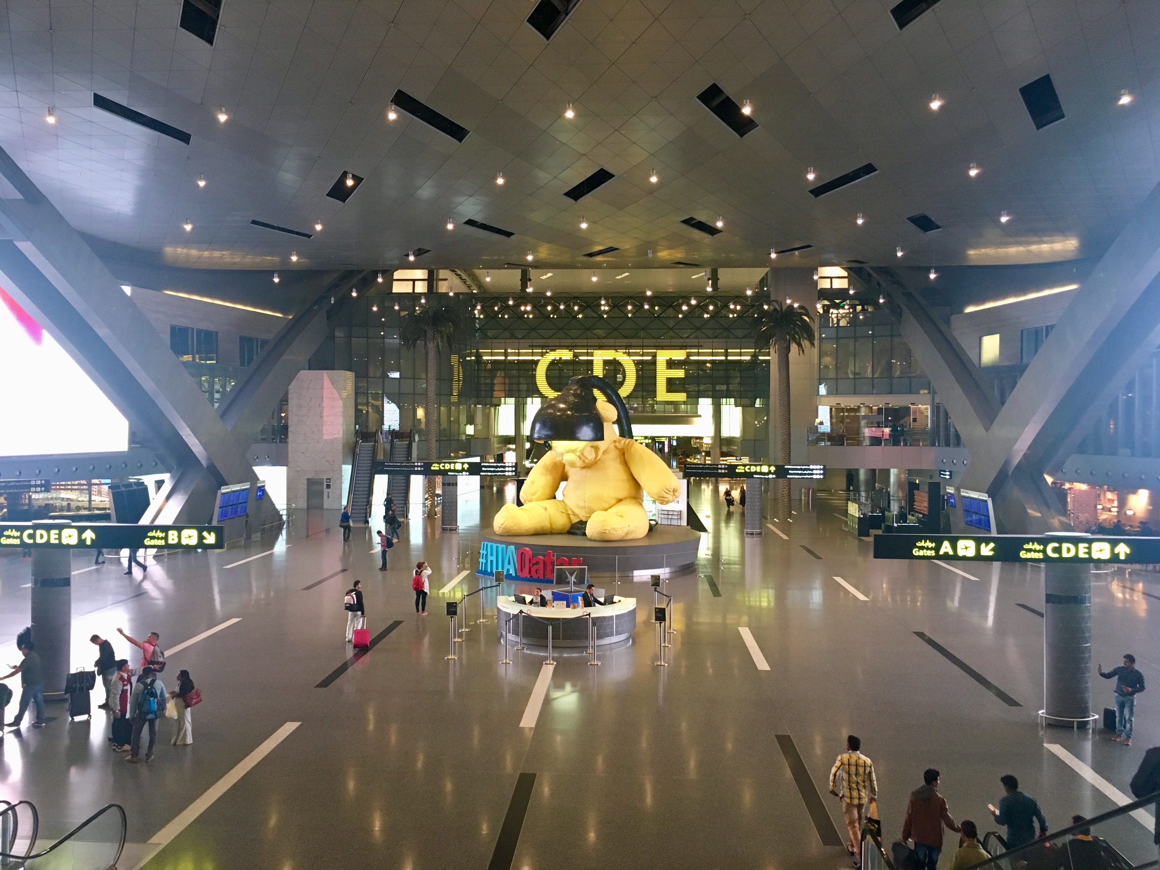 도하 국제공항에 도착하면 하마드공항의 상징 대형 곰돌이가 중앙에 보인다.