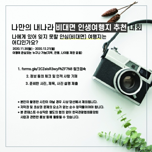 당분간 해외는 가기 어려운 이 때, 우리나라의 아름다운 여행지를 알게되는 좋은 행사인 듯 합니다.