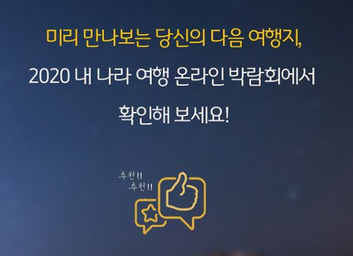 아래와 같이 2020 내 나라 온라인 여행 박람회를 간단히 소개해 드리겠습니다.