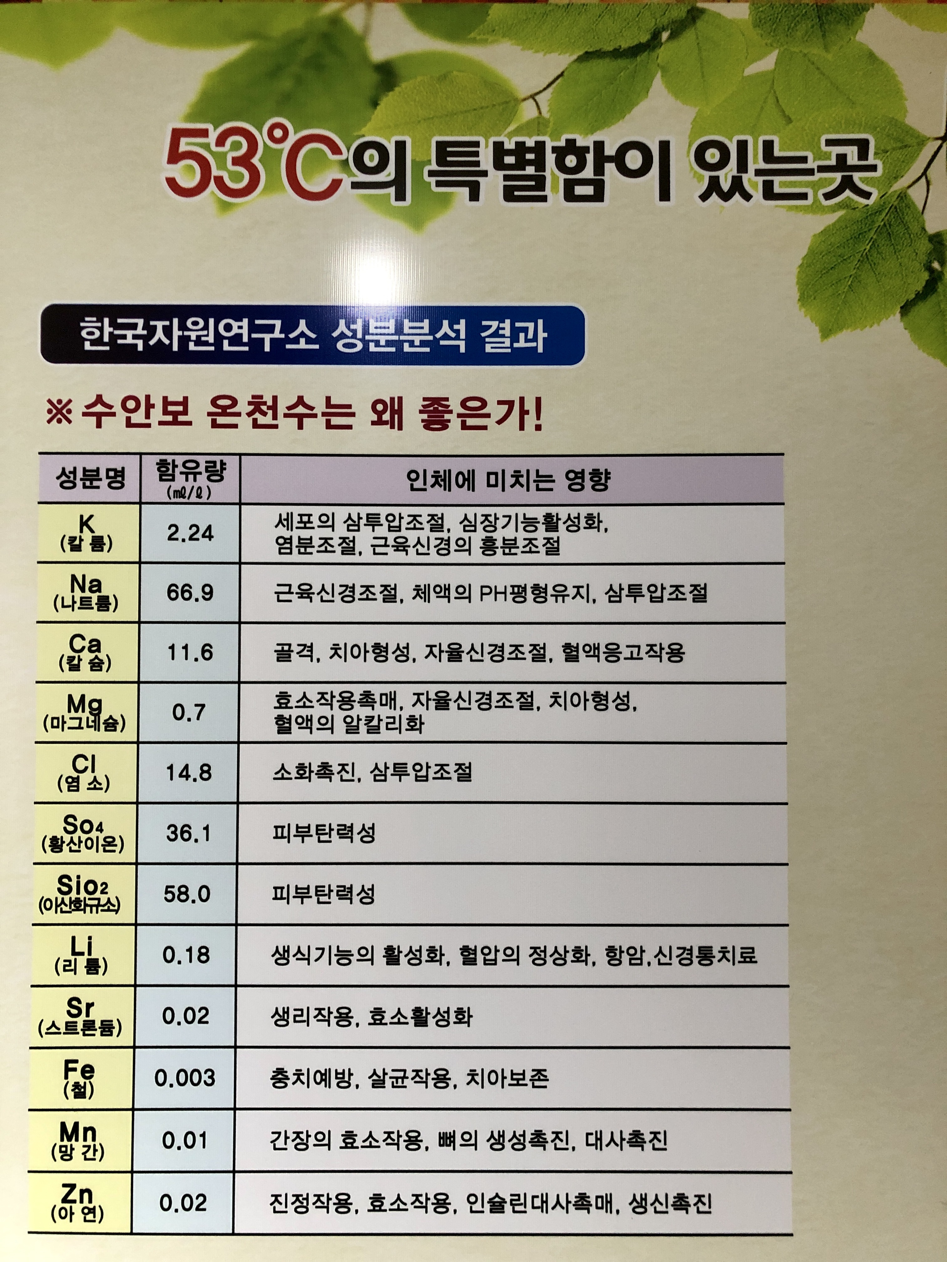 그리고 PH8.3의 약알라리성으로 인체에 유익한 53도씨의 최상의 온천수였습니다.