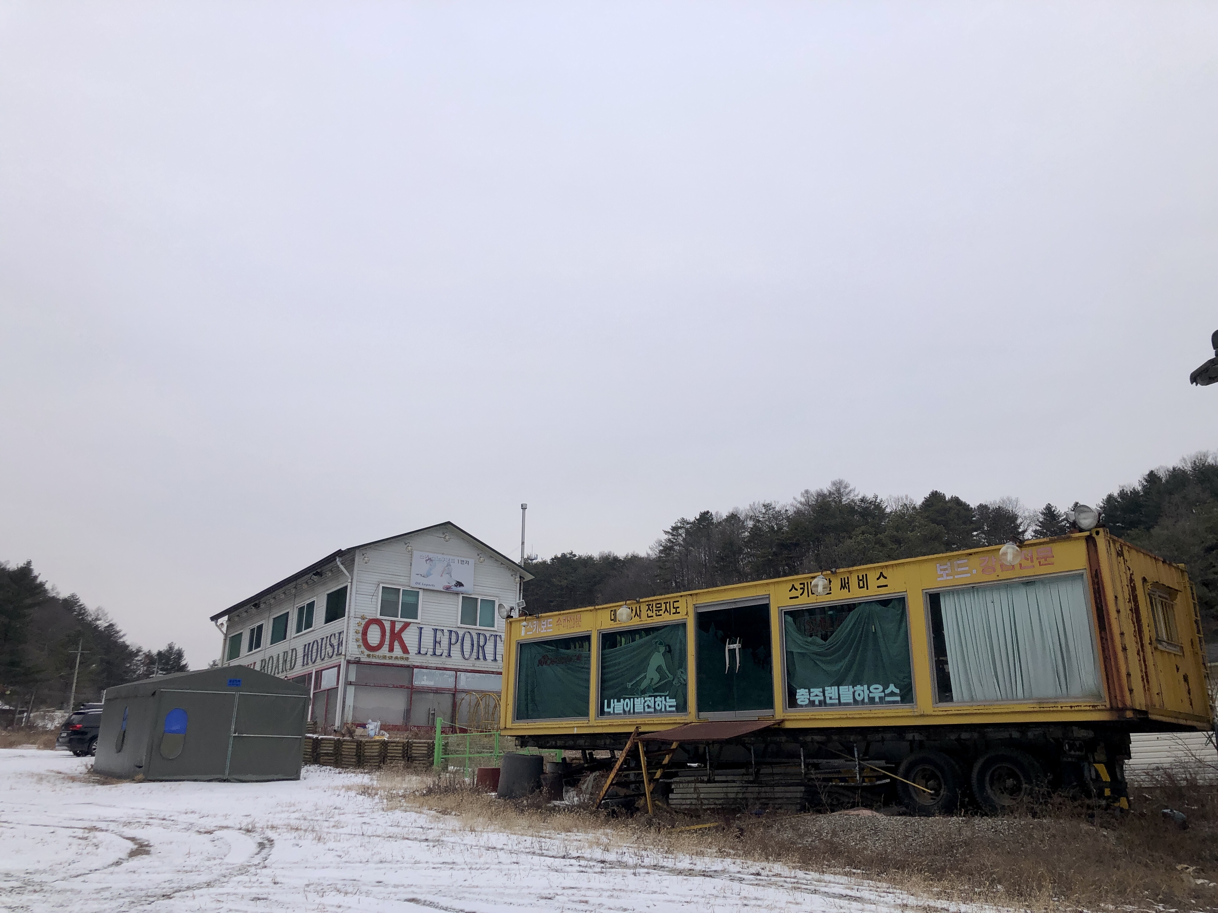 근처 스키장의 슬로프에 인공눈조차 없는 것을 보니 주변 스키렌탈샵도 당연히