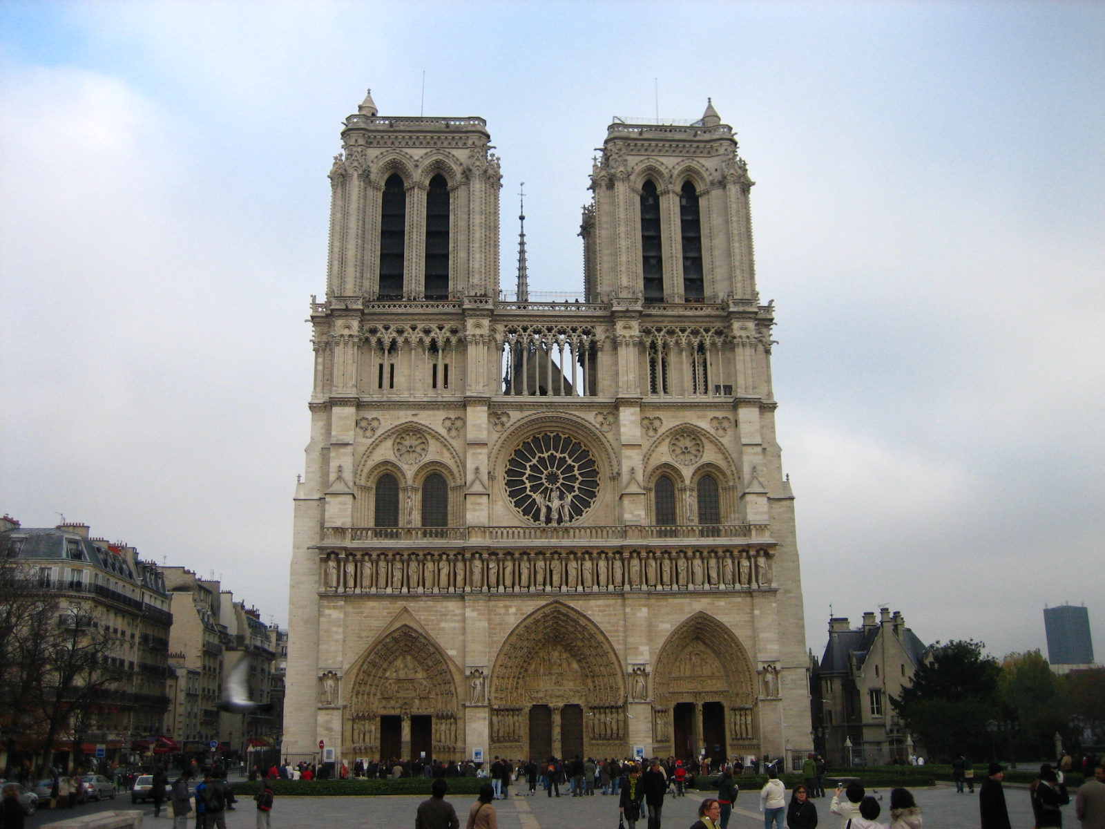 성당은 세느 강의 시떼 섬(île de la Cité)에 최초의 고딕 양식의 건축물로 11세기 말부터 지어지기 시작했는데