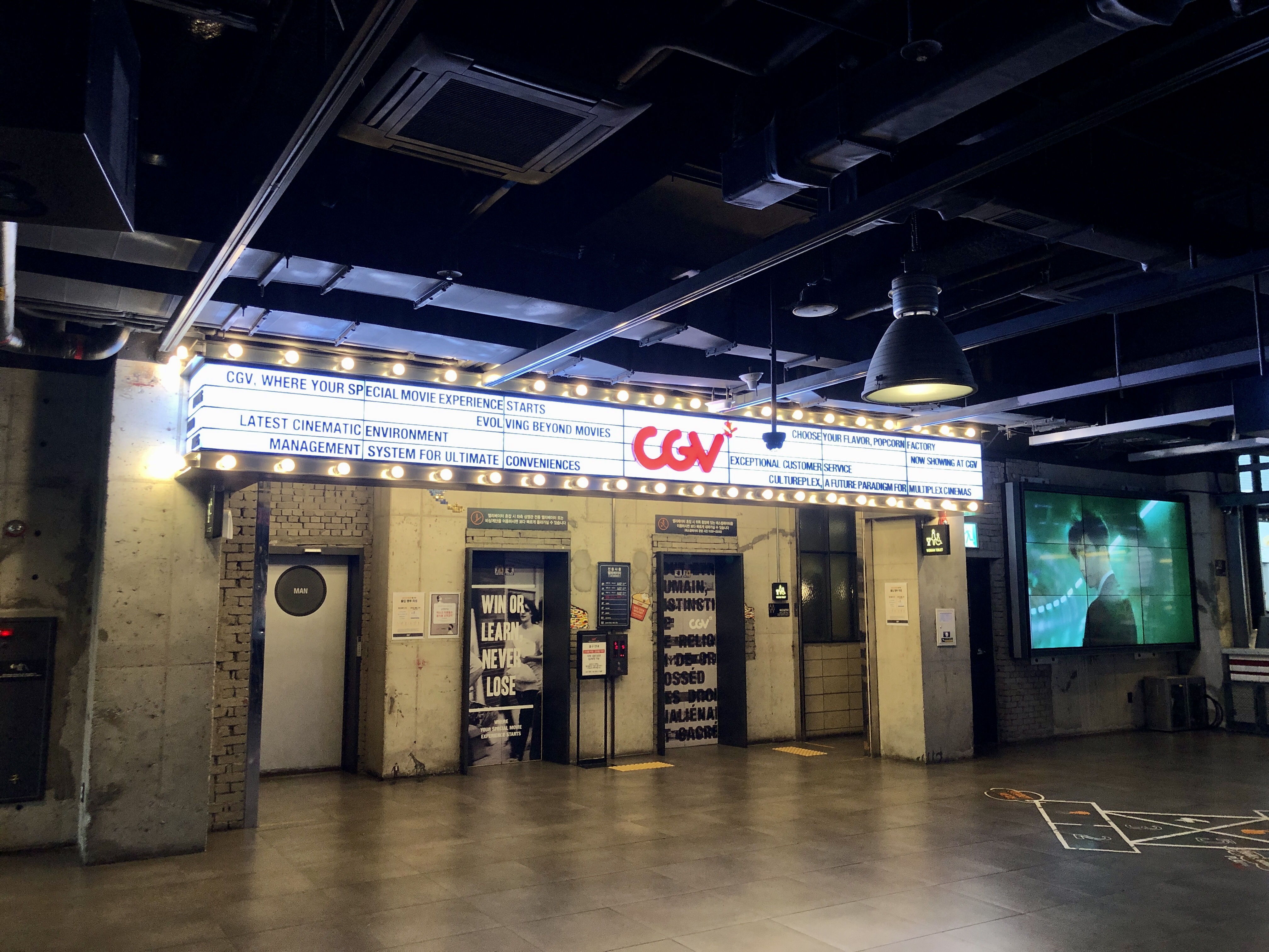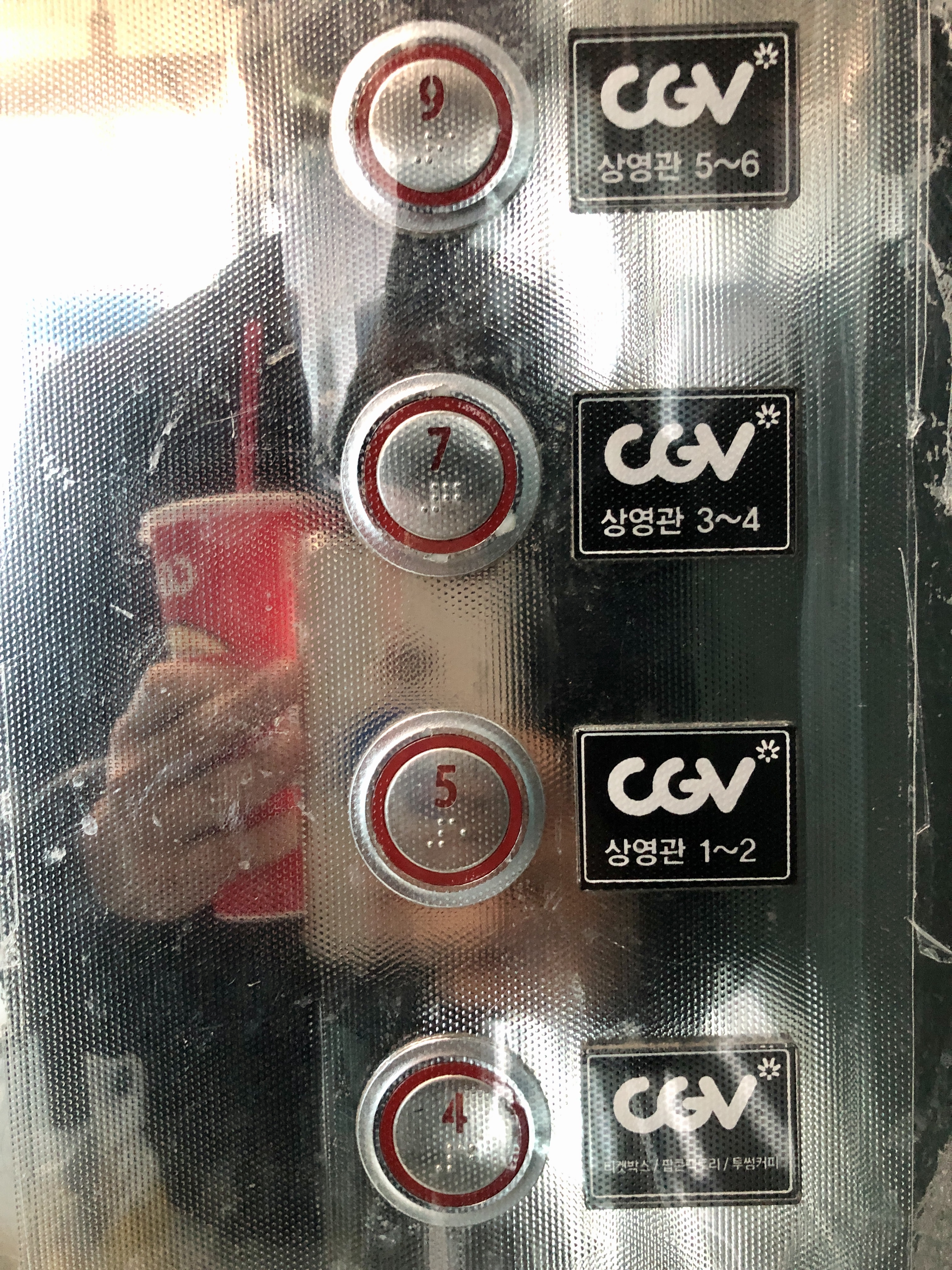 상영관인 4층에서 9층 사이는 엘리베이터로 이동해야 한다는 점입니다.