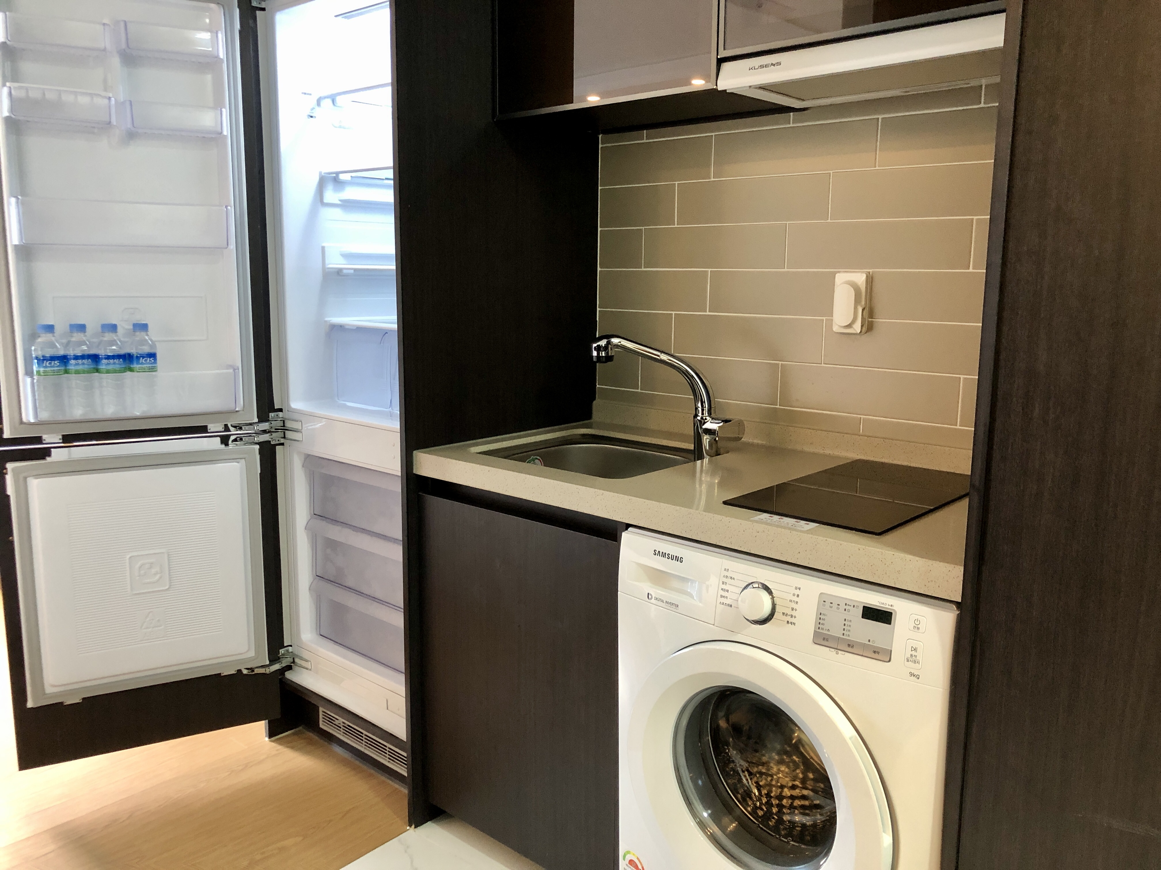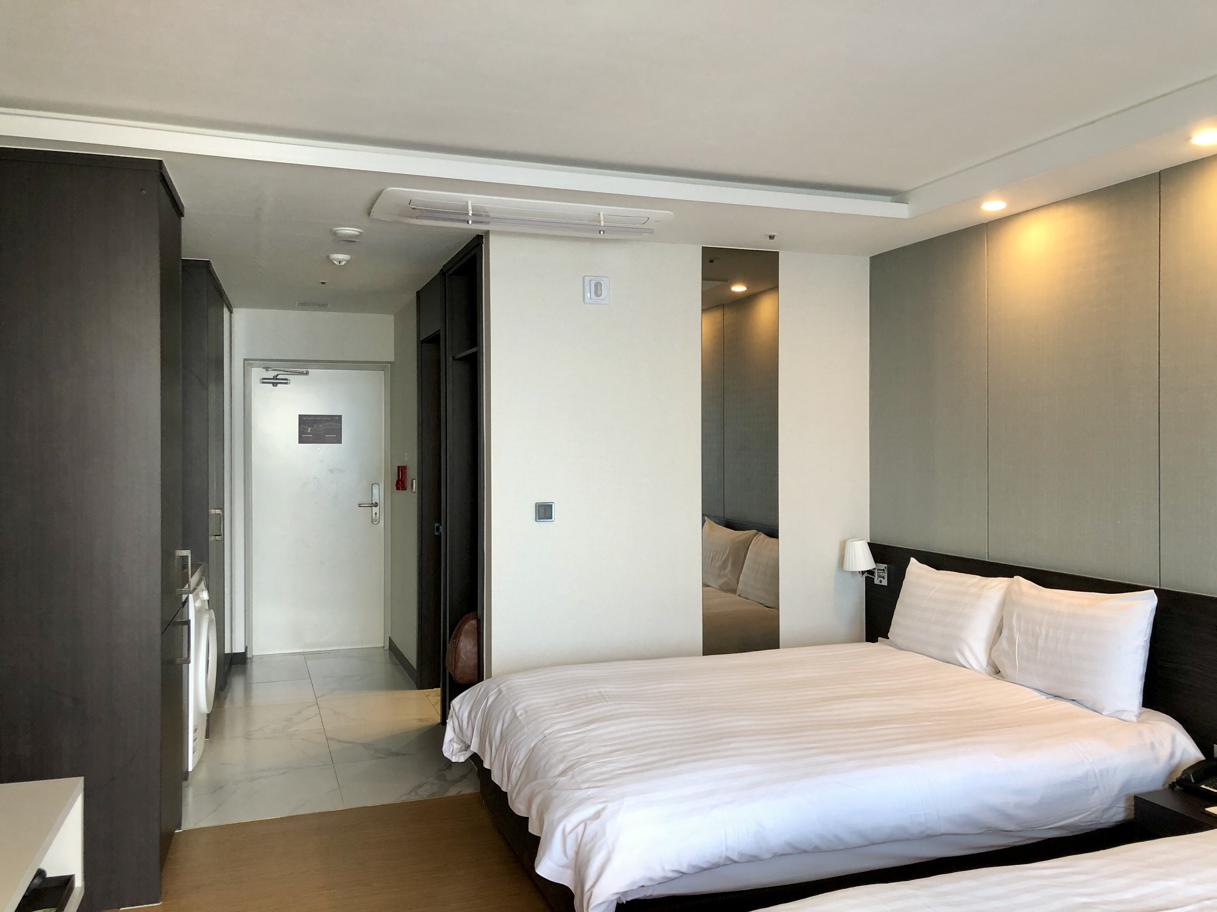 트윈베드 모두 더블사이즈로 매우 편리했고 객실에 냉장고와 세탁기 등 필요한 것은 모두 갖추어져
