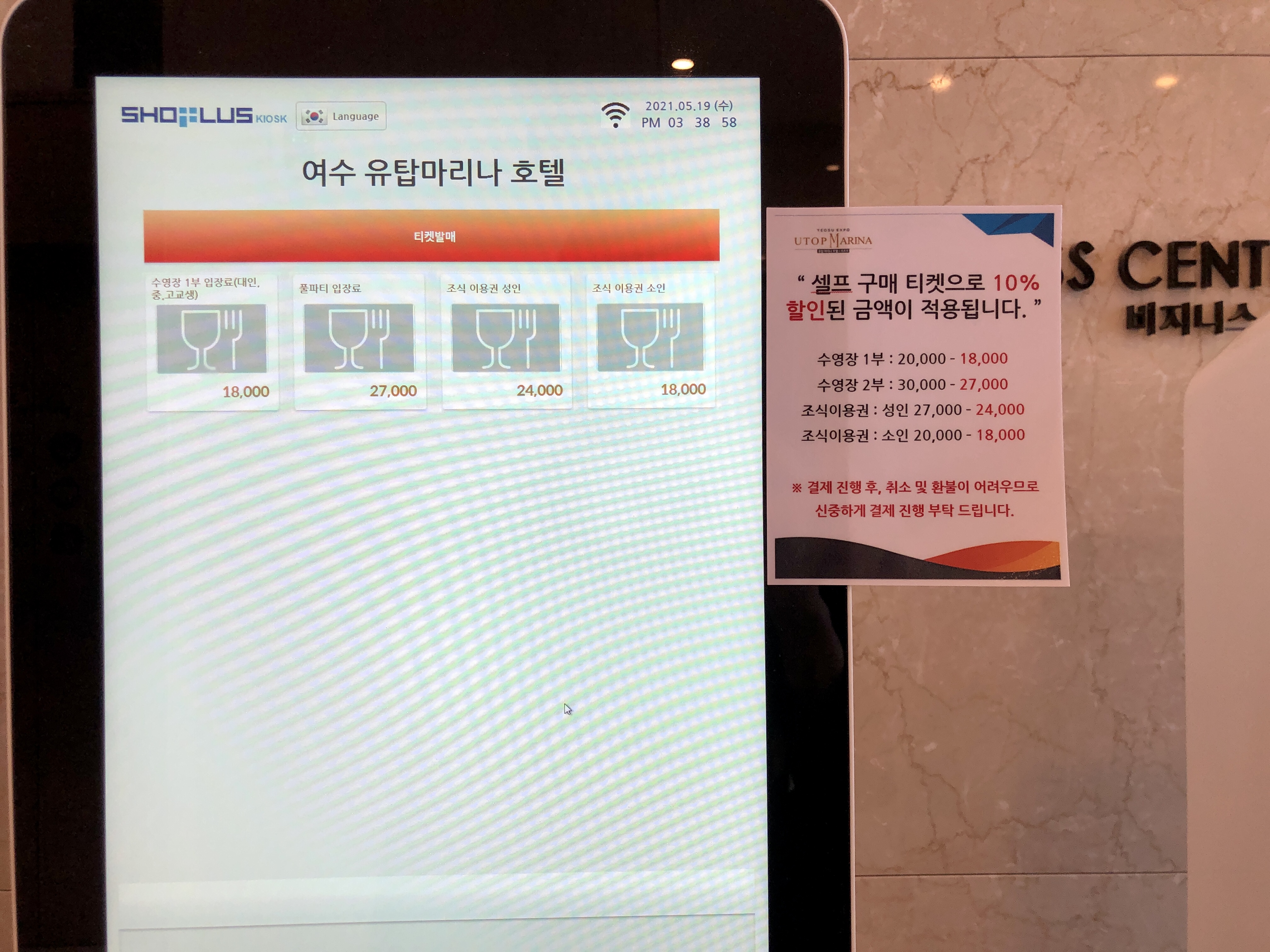 1층으로 올라가면 절차대로 온도체크와 문진표를 작성하고 체크인을 하기 위해 번호표를 뽑고 대기합니다.