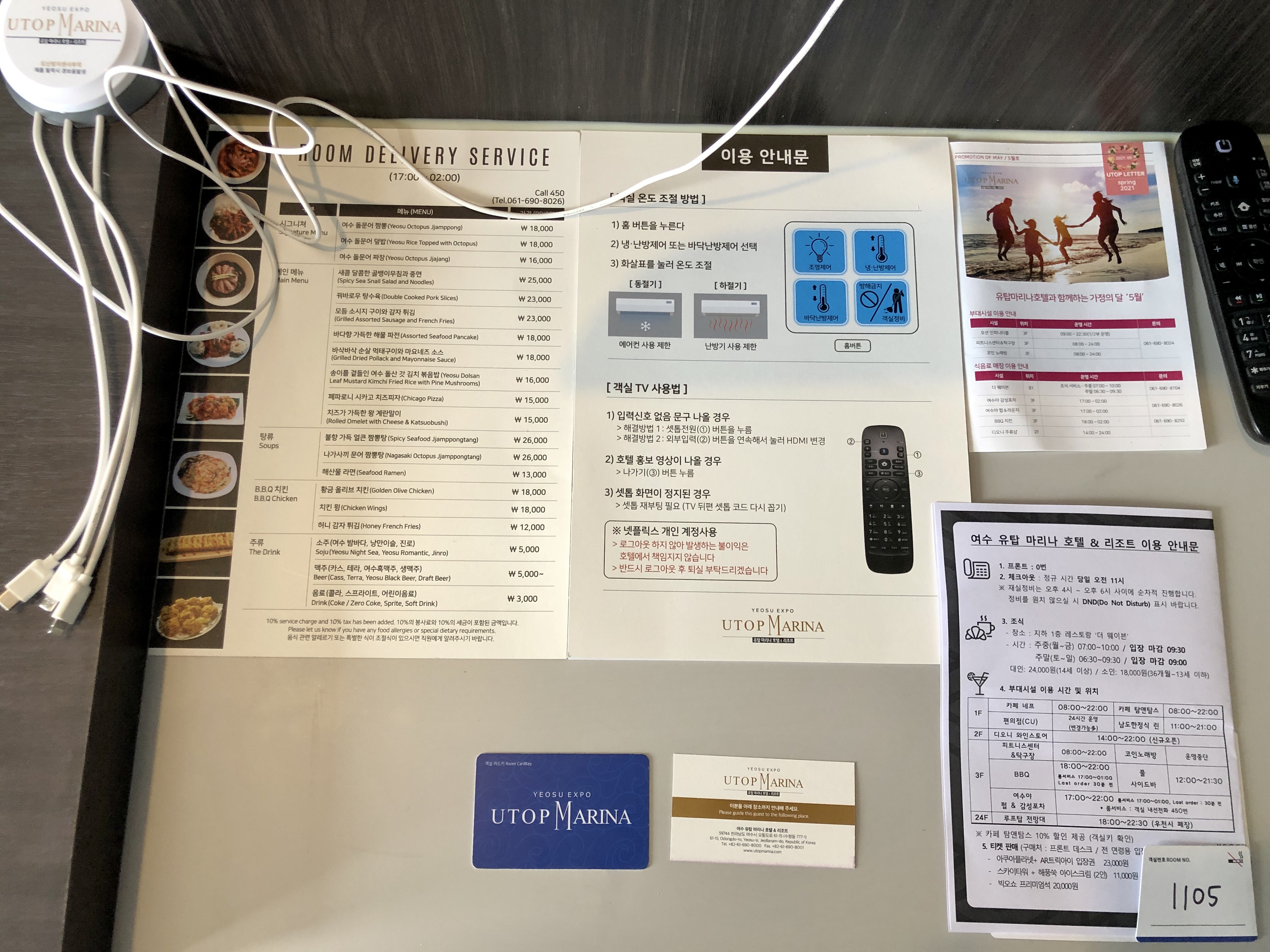 제 순서가 되고 간단히 체크인을 마치면 방에서 지낼 때 필요한 안내사항이 적힌 종이와