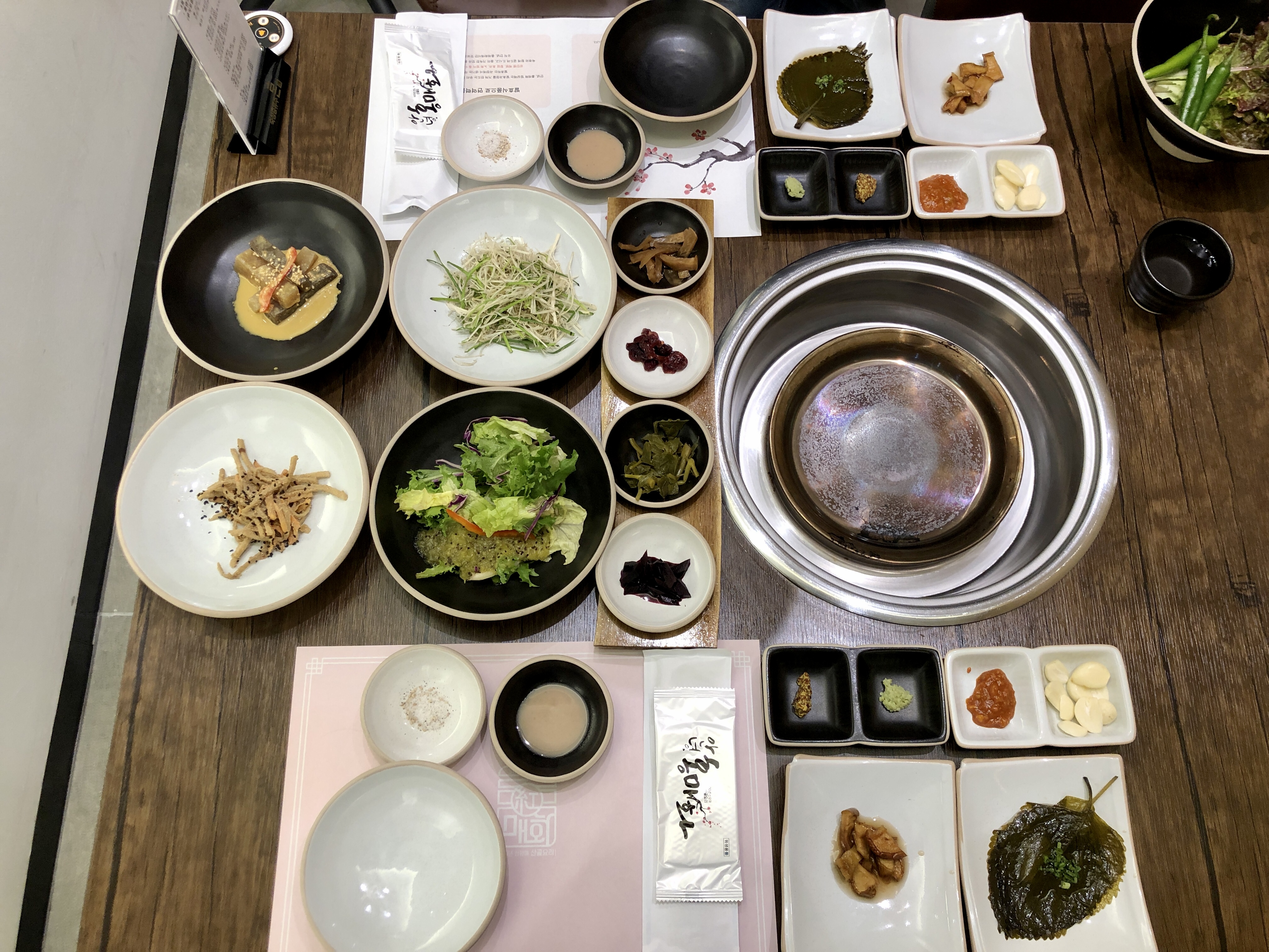 준비된 방으로 들어가니 미리 기본상이 차려져 있는데 여기에 반찬들이 더 나왔습니다.