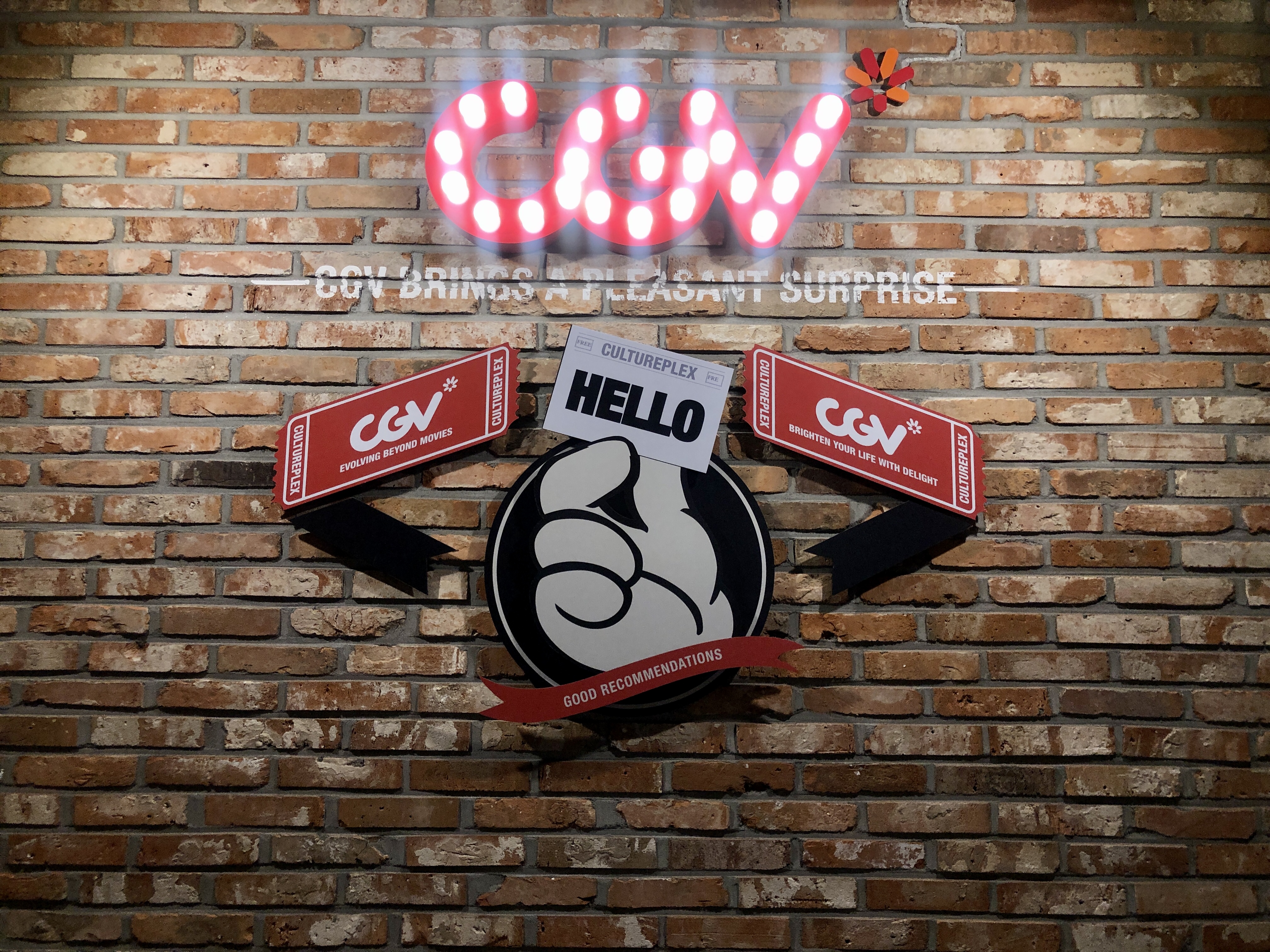 새로 오픈하는 CGV의 특징을 따라 아트적인 느낌의 벽돌 디자인이 많이 있었습니다.