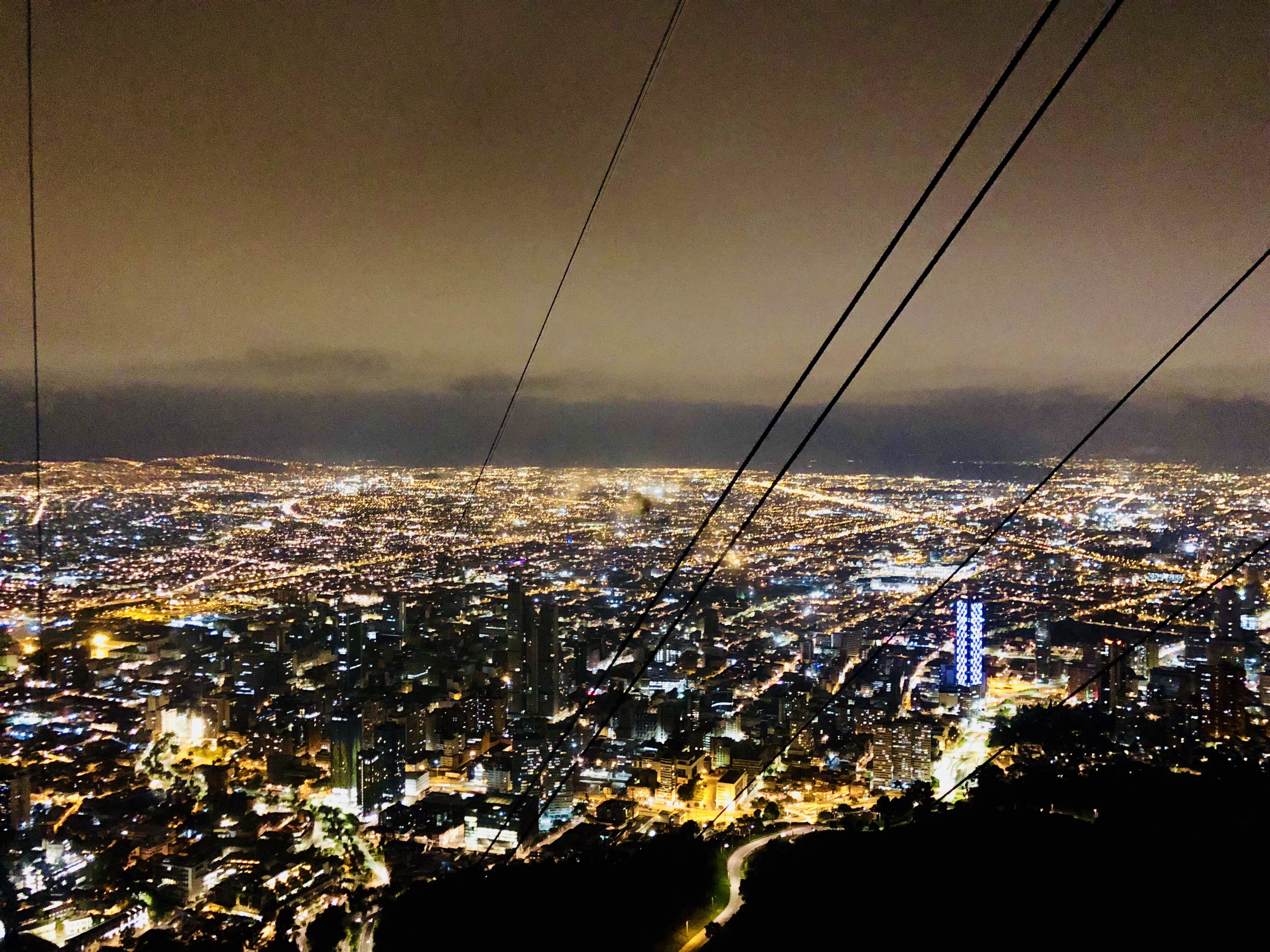 보고타의 야경을 감상하며 몬세라테 언덕으로 올라갑니다.