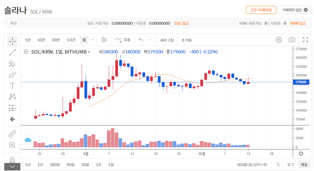 솔라나 코인은 이런 NFT 코인의 인기를 보여주듯이 지난 8월 빗썸 거래소에 75000원 선에 상장되었다가